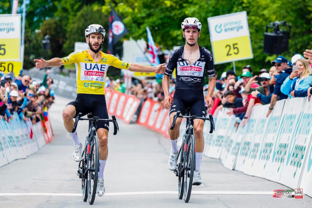 Пожав друг другу руки Адам Йейтс и его товарищ по UAE Emirates Жоау Алмейда первыми пересекли финишную черту седьмого этапа велосипедного «Тура Швейцарии» (Tour de Suisse), представлявшего собой 118,2-километровую дистанцию с финишем на Вилар-Сюр-Оллон. Первым всё же был обладатель жёлтой майки Йейтс.