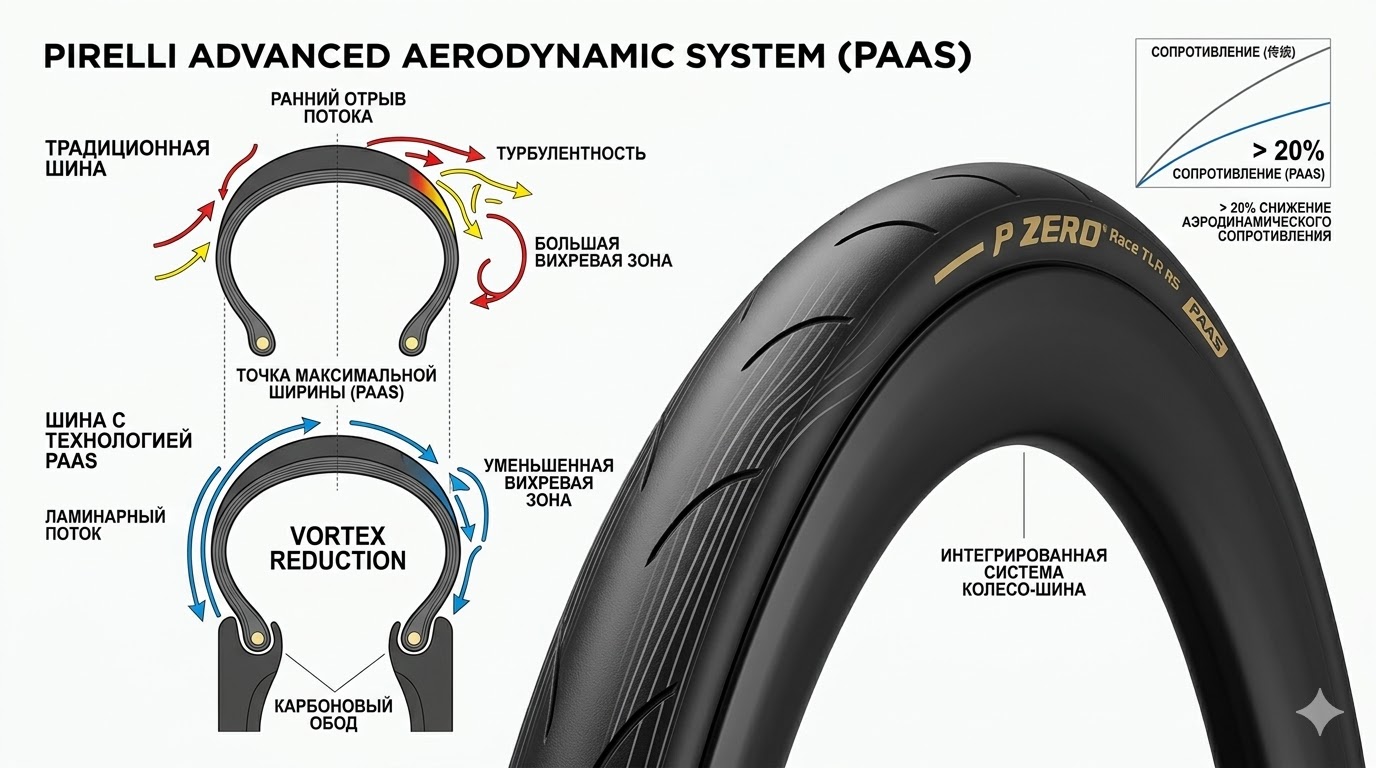 Итальянский шинный гигант Pirelli объявил о разработке запатентованной системы PAAS (Pirelli Advanced Aerodynamic System). Технология призвана кардинально улучшить аэродинамику шоссейных велосипедных шин, перенося опыт бренда из автомобильной промышленности в велоспорт.
