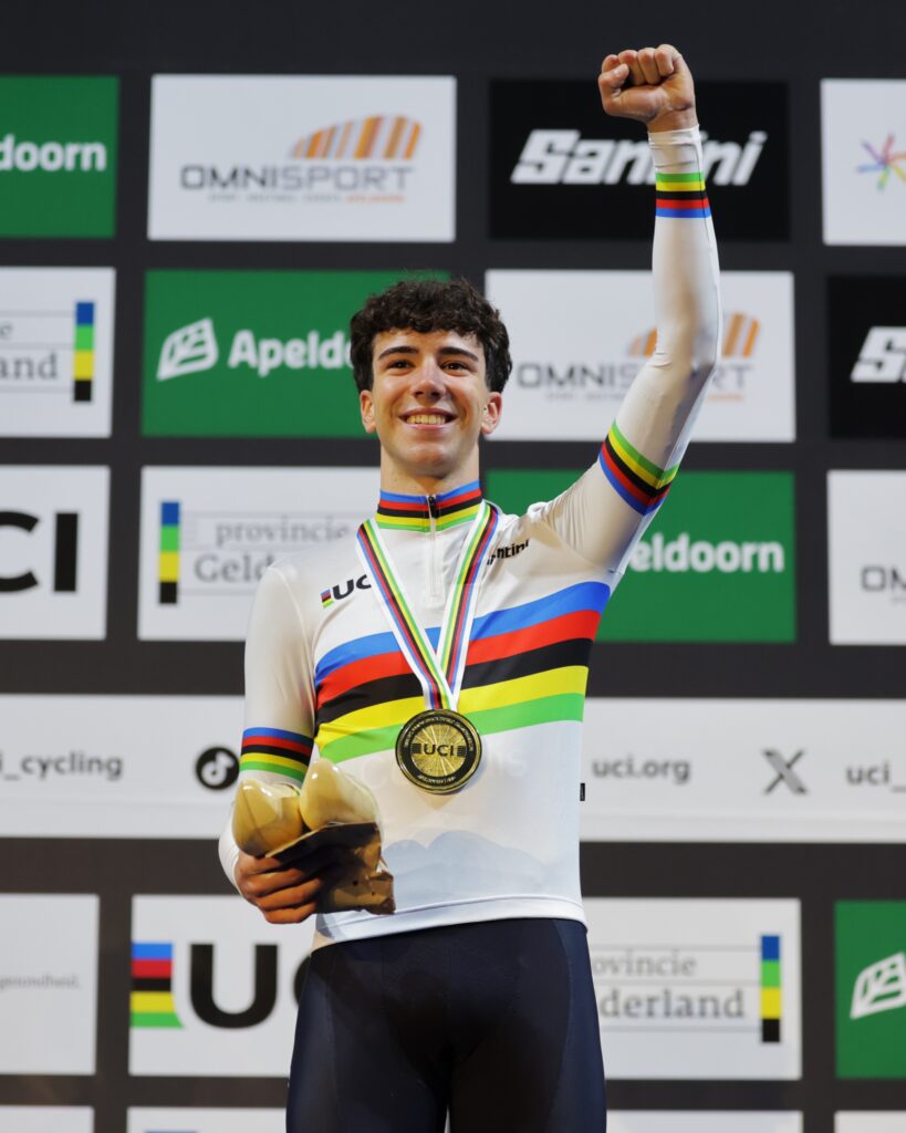 На чемпионате мира по трековому велоспорту среди юниоров бронзу в гонке по очкам завоевал Илья Слесаренко: белорус, выступающий в качестве нейтрального атлета, уступил только испанцу Эрику Убеде и немцу Морицу Мауссу.