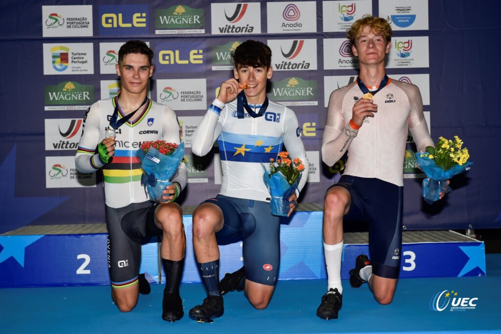 17-летний итальянский велогонщик Давиде Стелла завоевал третье золото чемпионата Европы по трековому велоспорту, выиграв юниорскую гонку на выбывание.