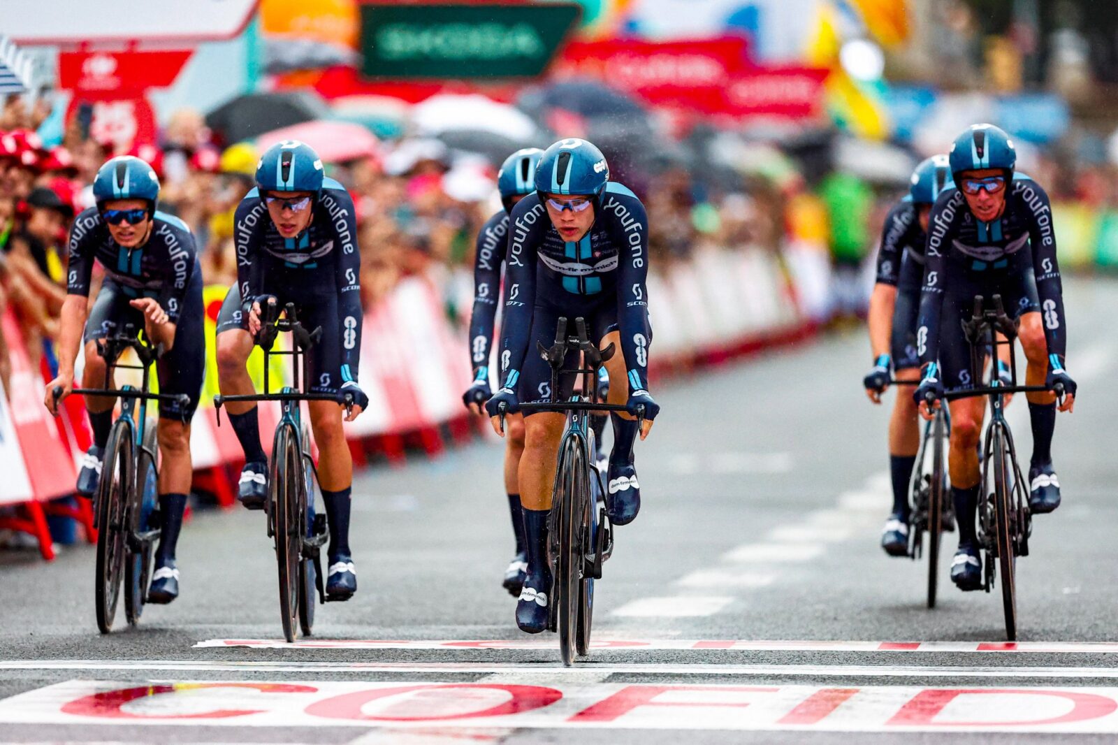 Команда dsm — firmenich одержала победу на первом этапе «Вуэльты Испании»: третий по счёту Гранд-тур стартовал в Барселоне с гонки с раздельным стартом на 14,8 километра. Однако организаторы просчитались, назначив гонку на вечернее время: во-первых, пошёл сильный дождь и небо затянули тучи, а во-вторых, городские улицы не были освещены достаточным образом и сильнейшие команды, стартовавшие последними, проехали гонку буквально в темноте.