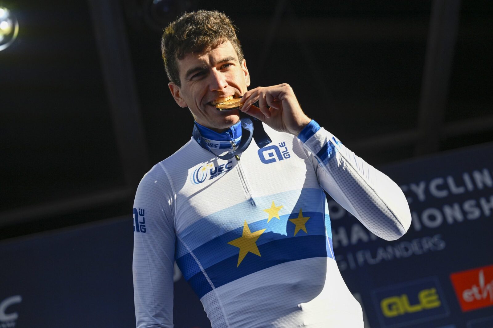 Эдоардо Аффини из сборной Италии поднялся на подиум в качестве победителя чемпионата Европы по велоспорту, выиграв индивидуальную гонку с раздельным стартом на 31,3 километра. Эту дистанцию итальянец из Visma | Lease a Bike проехал за 35 минут и 15 секунд.