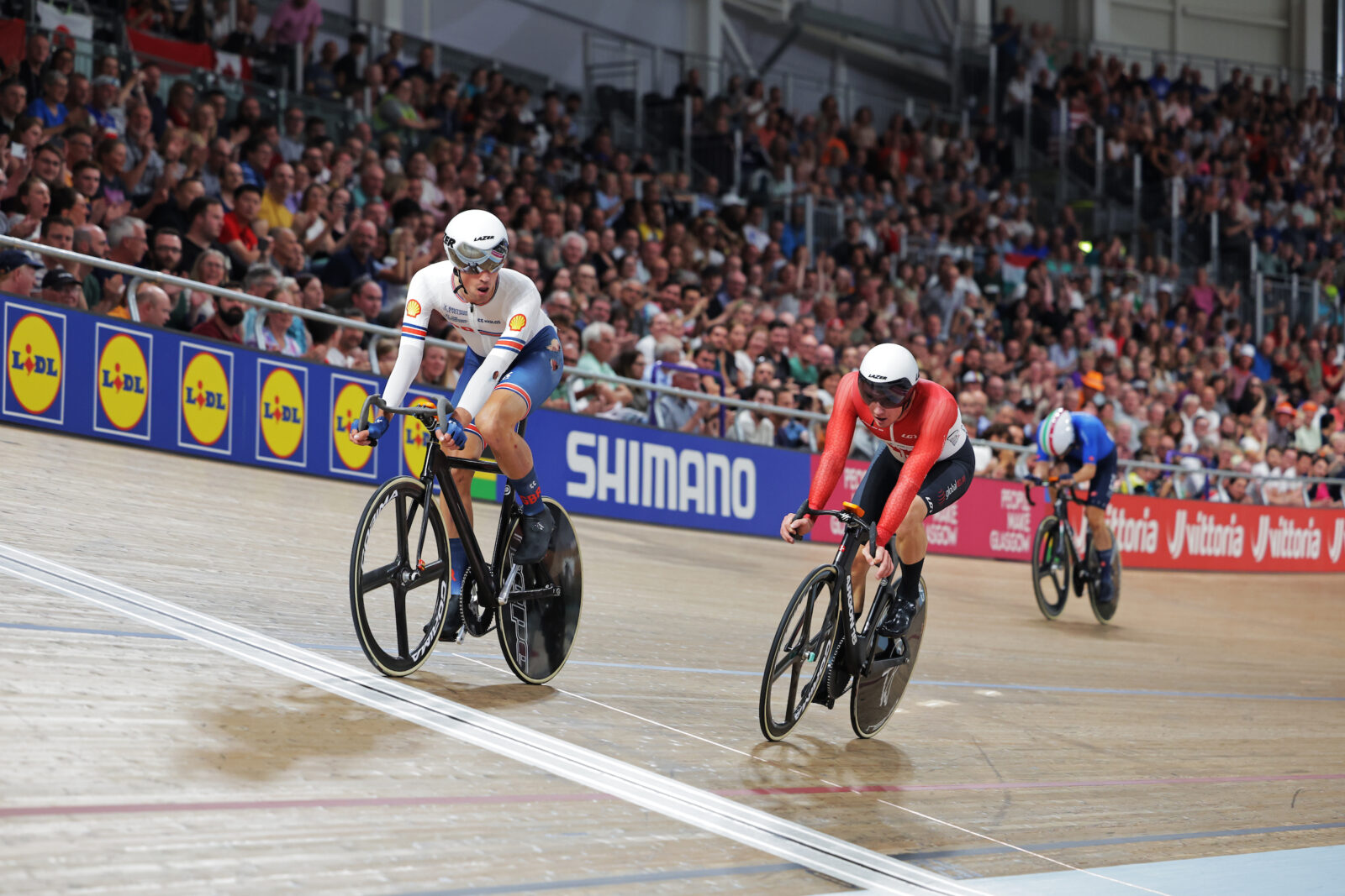 Гонка на выбывание – очень динамична: каждые два круга трек покидает последний, кто пересечёт финишную черту последним. Всего на старт выходит 24 гонщика. Британец в итоге остался на полотне трека с молодым канадцем Диланом Бибичем и весьма уверенно выиграл у него спринт.
