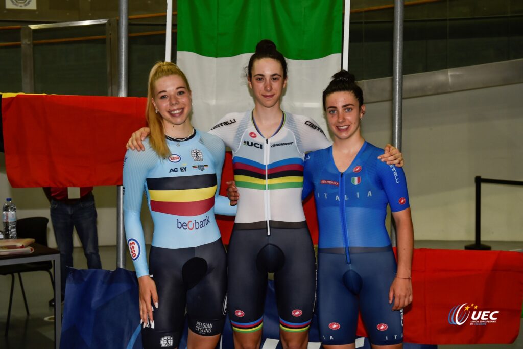 Федерика Вентурелли из сборной Италии завоевала золотую медаль чемпионата Европы по трековому велоспорту, выиграв индивидуальную гонку преследования у бельгийки Хелены Хестерс.