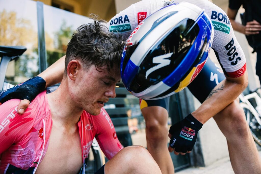Невероятной борьбой завершилась молодёжная «Джиро д’Италия» — Giro Next Gen: сегодня состоялся заключительный восьмой этап велогонки и всё в генеральной классификации решили лишь несколько секунд. Люк Таквелл из Red Bull — Bora — Hansgrohe Rookies стартовал в розовой майки, а на финише уже обливался слезами — победу в гонке он упустил. Она досталась 19-летнему словенцу Якобу Омрзелю.