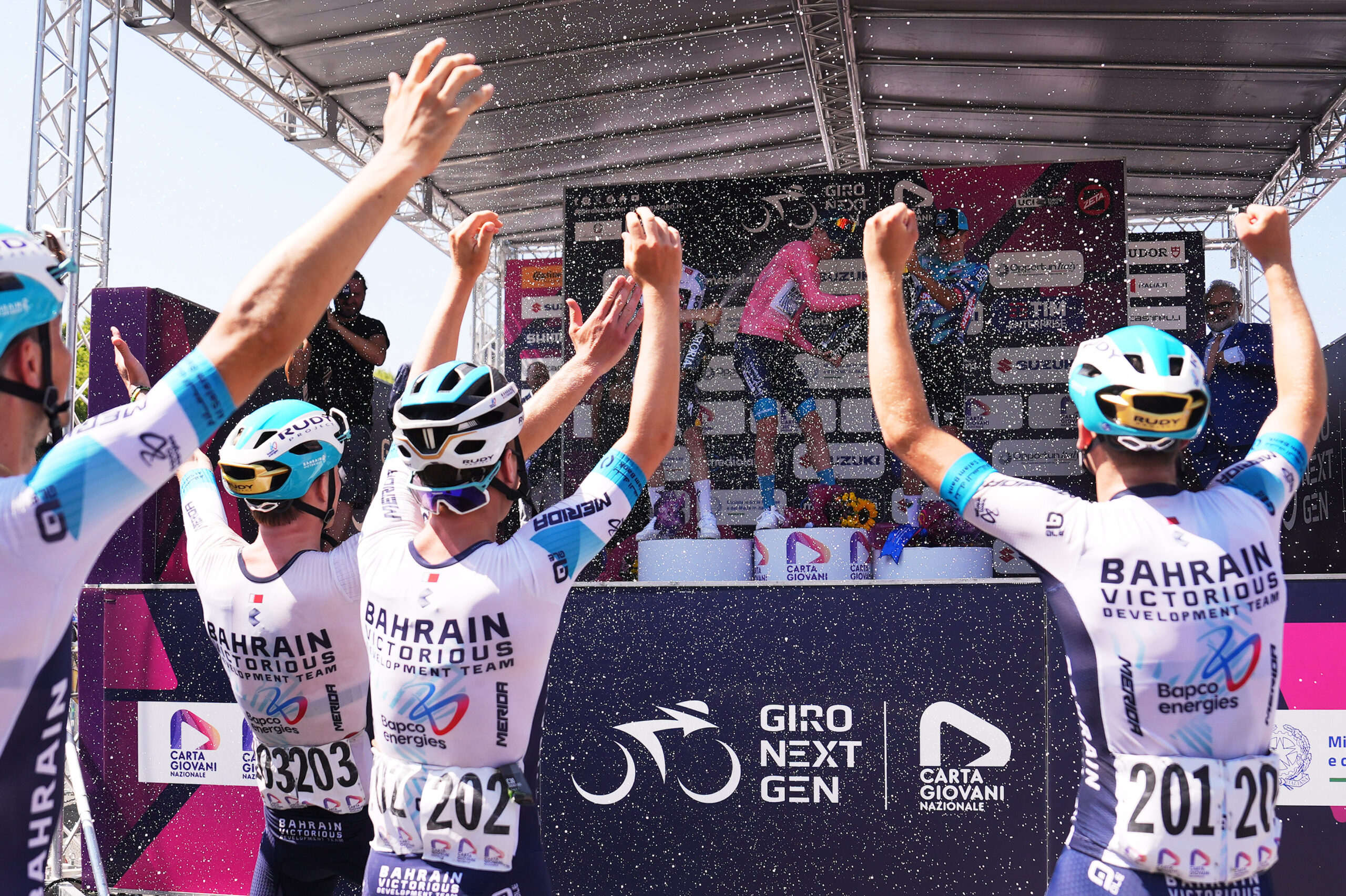Команда Bahrain — Victorious Development провела великолепную неделю в Италии, где её лидер Якоб Омрзель добился впечатляющих результатов. Спортсмен не только завоевал розовую майку, но и получил майку лучшего молодого гонщика, а также поднялся на подиум в двух этапах гонки. Особого внимания заслуживают достижения других членов команды: Алессандро Борго занял второе место на шестом этапе, а Сет Данвуди одержал победу на четвёртом этапе. В целом, команда целенаправленно боролась как за этапы, так и за общий зачёт.
