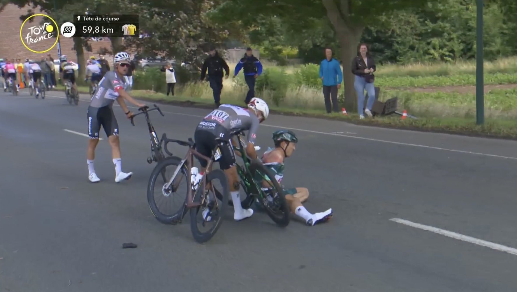 Йеспер Филипсен разбился на третьем этапе «Тур де Франс»: бельгийский спринтер из Alpecin — Deceuninck стал жертвой гонки во время промежуточного спринта, в котором состязались несколько гонщиков, включая двух представителей Intermarché — Wanty — Лауренса Рекса и Биниама Гирмая.