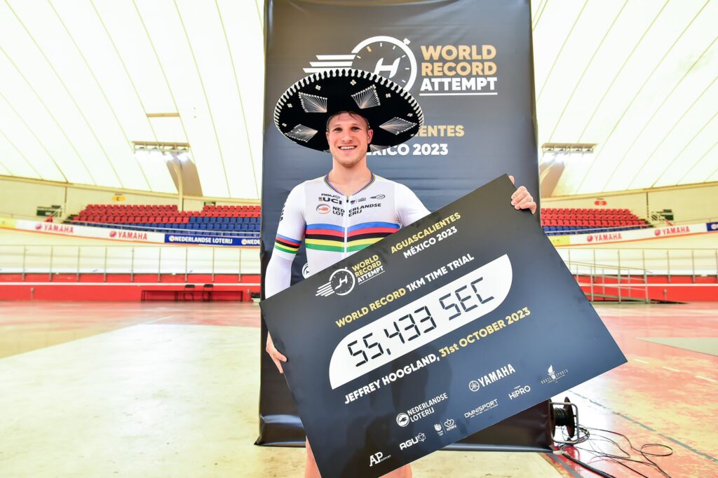Джеффри Хугланд — новый обладатель мирового рекорда в гите на 1000 метров. Голландец на велодроме в Агуаскальентесе побил рекорд Франсуа Перви: во время гонки Кубка мира в Агуаскальентесе в декабре 2013 года француз проехал километровую гонку за 56,303 секунды.