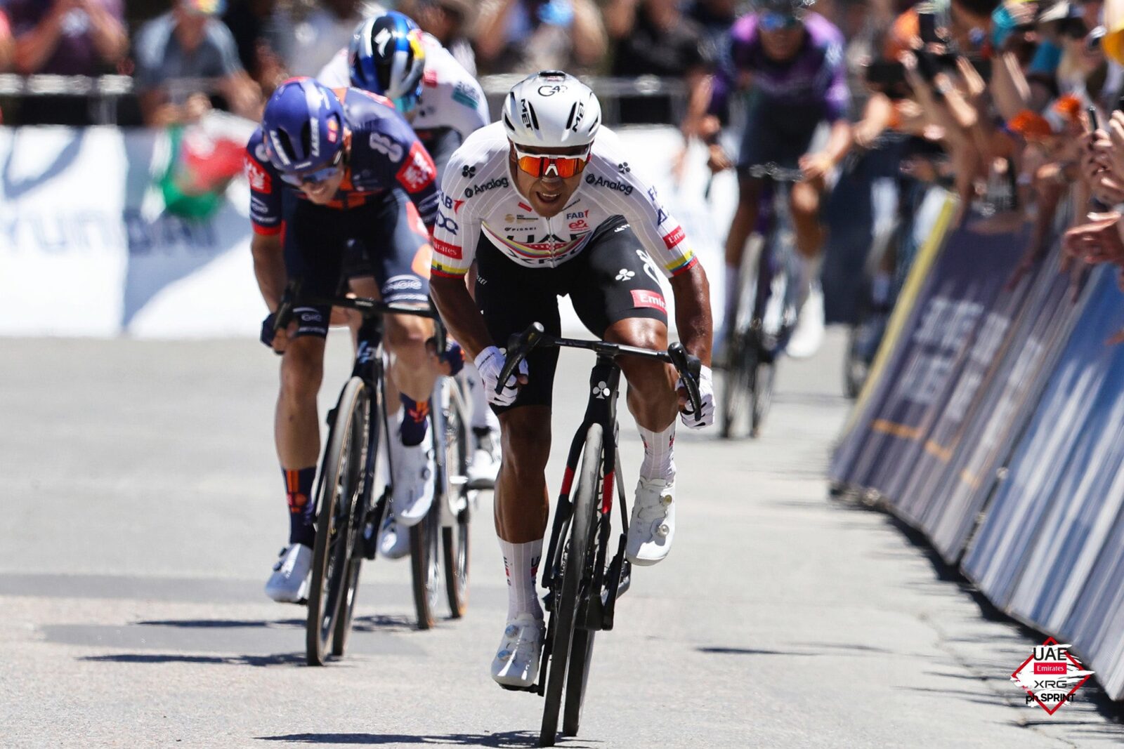 Спустя несколько секунд финишировали Люк Плапп из Jayco — AlUla, Хавьер Ромо из Movistar.