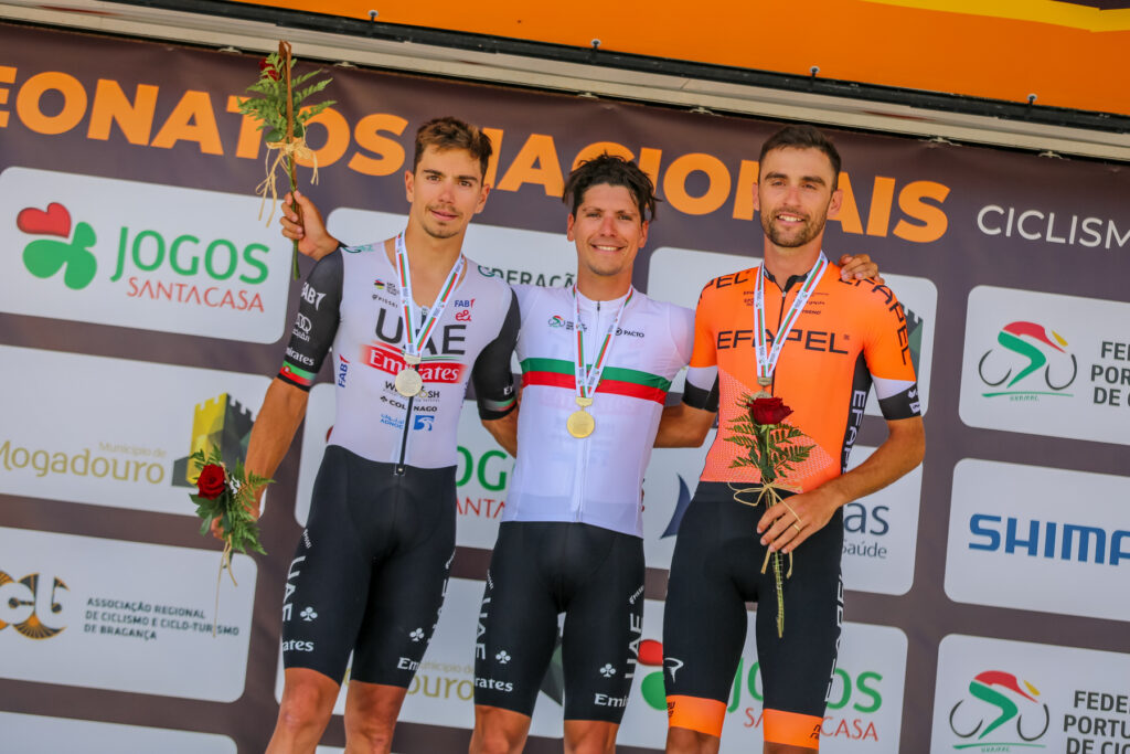 Жоау Алмейда с полуминутным преимуществом выиграл чемпионат Португалии по велоспорту в гонке с раздельным стартом на 33,6 километра. Рядом с ним на подиуме будет его товарищ по UAE Emirates Иво Оливейра. Третье место занял Хуаким Сильва из Efapel.