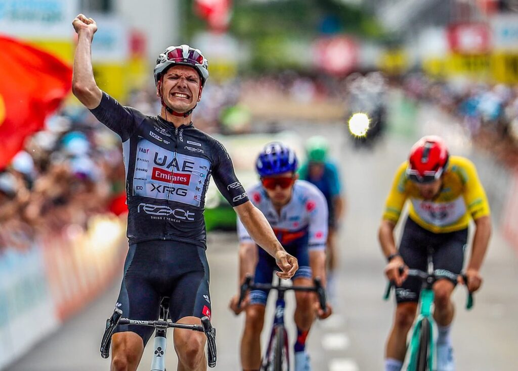 Три гонщика боролись за победу на седьмом этапе велосипедного «Тура Швейцарии» (Tour de Suisse): Кевин Воклен первым начал атаку, но её сразу же поддержали Оскар Онли и Жоау Алмейда. Француз из Arkéa — B&B Hotels старался ради сохранения майки лидера велогонки, а Алмейде эту атаку пропускать было никак нельзя — в генеральной классификации он проигрывал Воклену всего несколько секунд. Оскар Онли в свою очередь стремился ко второй победе на этой гонке. У всех был интерес, но лишь капитан UAE Emirates — XRG обладал хорошим спринтом, чем Жоау и воспользовался.