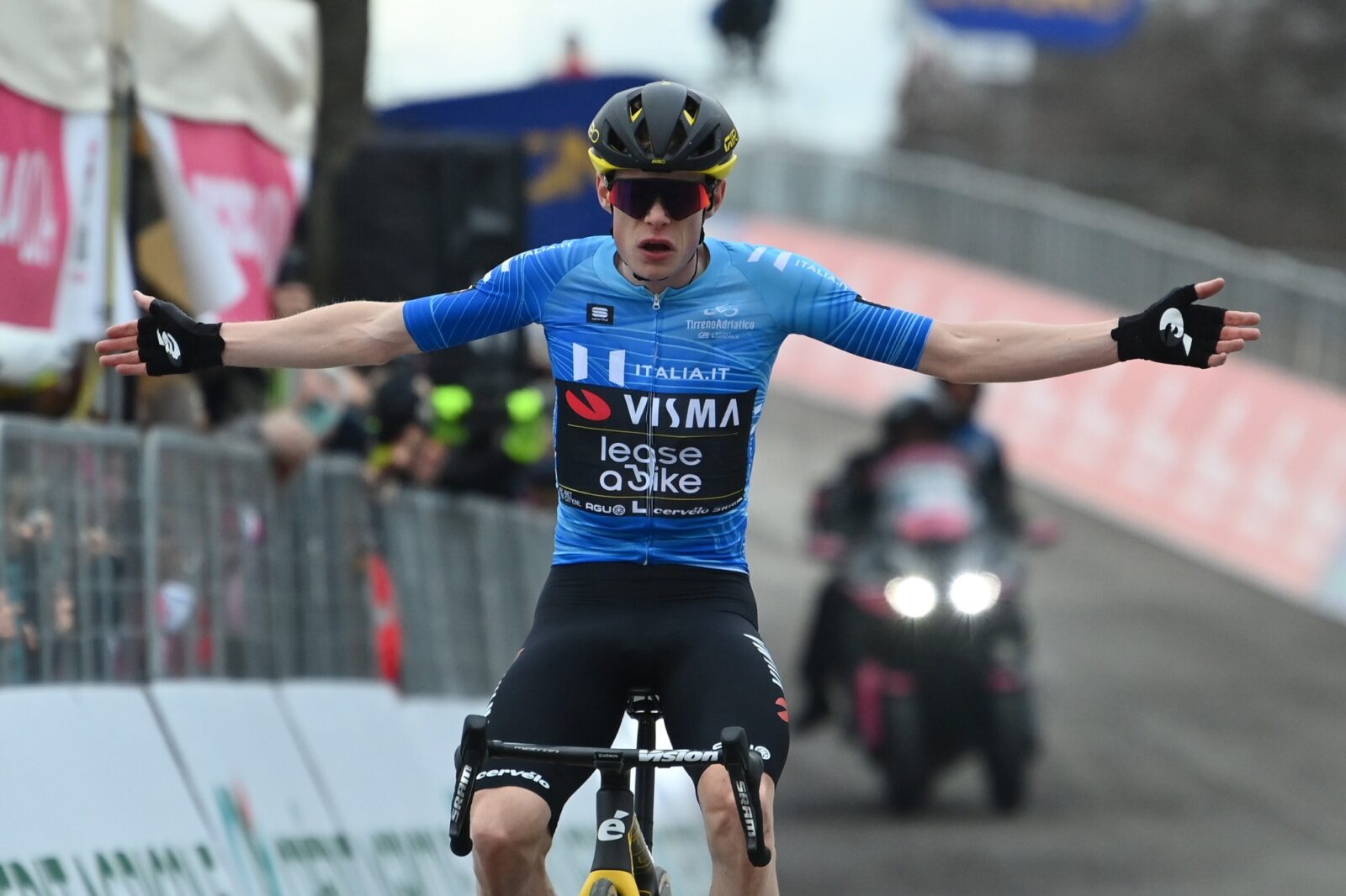 Йонас Вингегор одержал победу на шестом этапе «Тиррено — Адриатико»: датчанин из Visma | Lease a Bike сначала держался в тени, но после того как за 6 километров пелотон добрал Ричарда Карапаса, то гонка взорвалась — Йонас в отличном стиле и довольно быстро оторвался от Хуана Аюсо и Джая Хиндли, не позволив тем догнать себя. Сегодня гонщики проехали 180 километров, а время победителя составило 4 часа 31 минуту и 57 секунд.