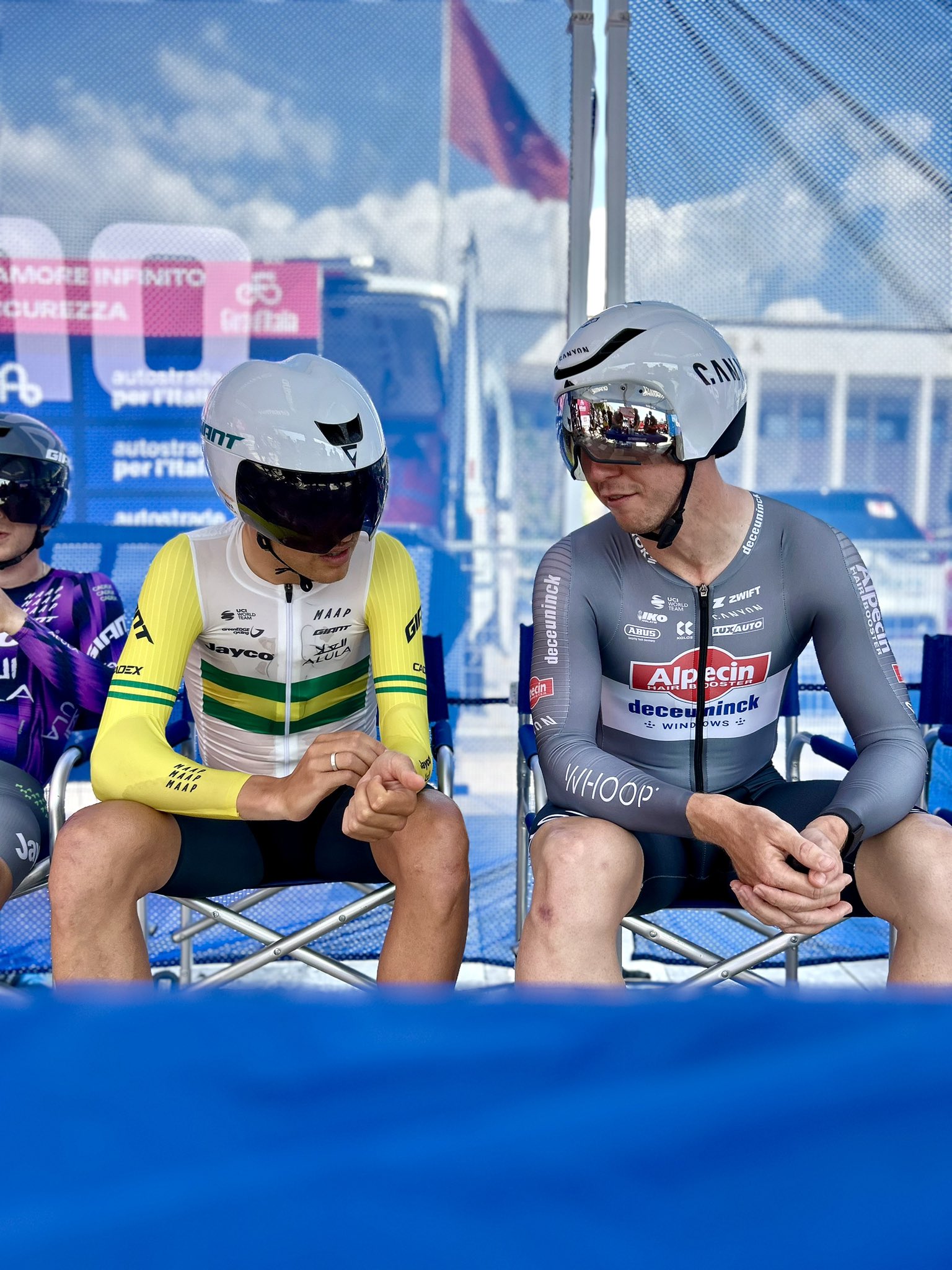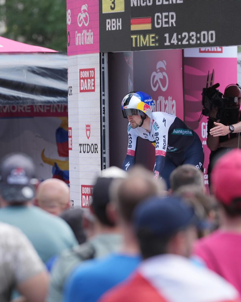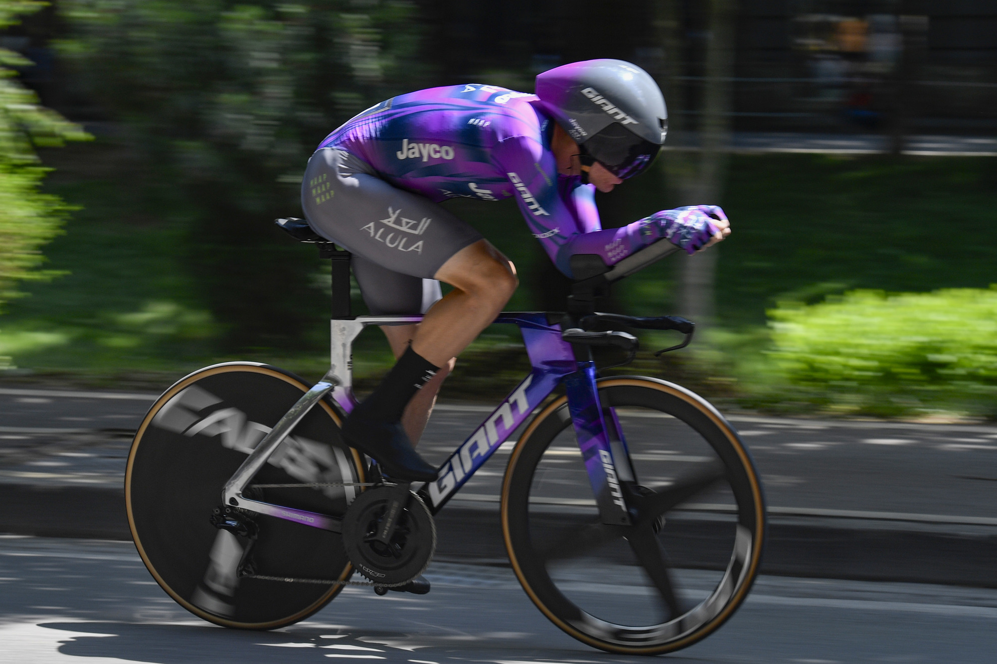 Первый серьёзный временной ориентир установил чемпион Европы в ITT Эдоардо Аффини из Visma | Lease a Bike — 16 минут и 13 секунд. Чуть позже его на 3 секунды опередил Джей Вайн из UAE Emirates — XRG. Неплохо проехал Матиас Вацек из Lidl — Trek, но чех в итоге показал то же время, что и Аффини.