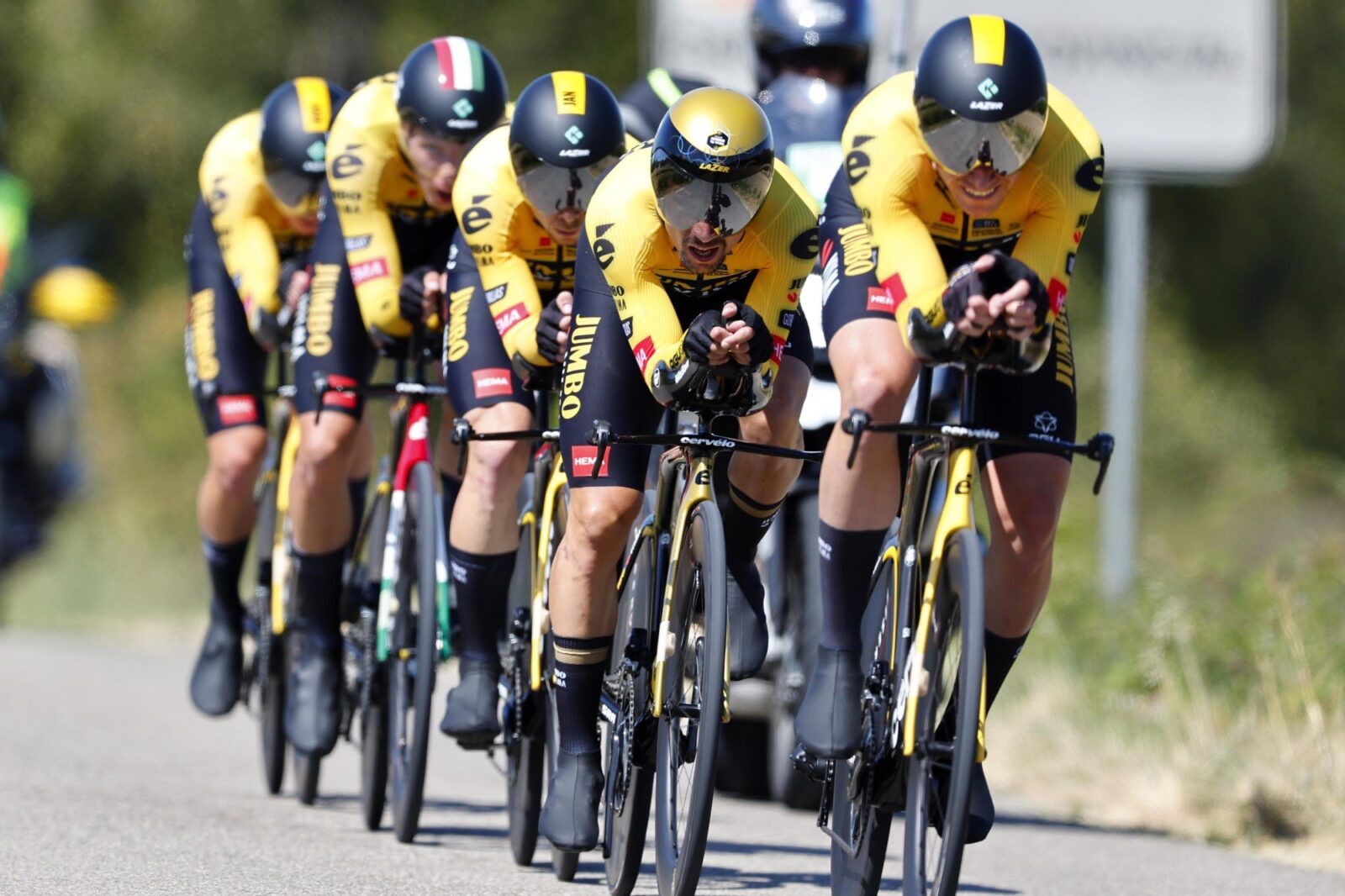 Все ждали старта Jumbo-Visma. И команда Приможа Роглича не подвела — на первой же временной отсечке она опережала на 12 секунд всех остальных соперников. Это была половина дистанции. Но несмотря на это, команде удалось сохранить высокий темп и на второй половине.