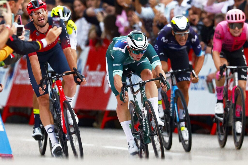 Кэден Гровс одержал победу на заключительном этапе «Вуэльты Испании»: австралиец из Alpecin — Deceuninck опередил в финале 21-го этапа Филиппо Гану и Нико Денца, и тем самым Кэден устроил хет-трик на этом Гранд-туре — ему покорились четвёртый, пятый и теперь вот 21-й этап велогонки.