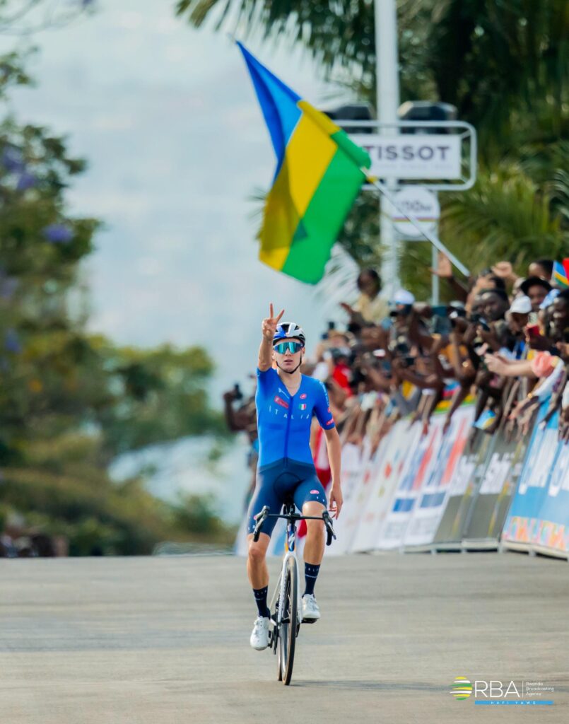 Решающую атаку итальянец предпринял в шести с половиной километрах от финишной черты, оставив позади своего попутчика Яна Юбера из Швейцарии, с которым проехал несколько десятков километров. У того попросту уже не было сил ответить на атаку Финна. И далее Лоренцо уверенно добрался до финишной черты, показав там два пальца — как символ второй победы на чемпионатах мира — в 2024 году он завоевал титул чемпиона мира среди юниоров.