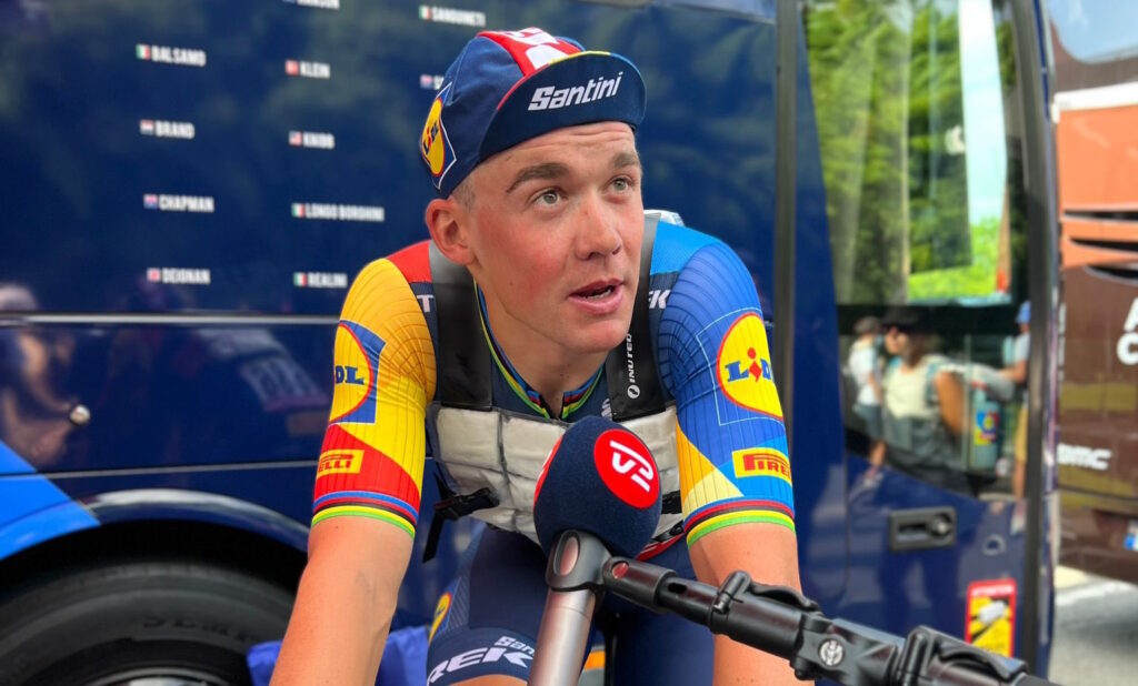 Датский велогонщик из Lidl — Trek Мадс Педерсен финишировал на третьем этапе «Тур де Франс» только девятым, и, конечно, не скрывал разочарования. Он не сумел занять выгодную позицию в суматошном и очень скоростном финале, а когда получил свободное пространство, то Йеспер Филипсен уже праздновал победу.
