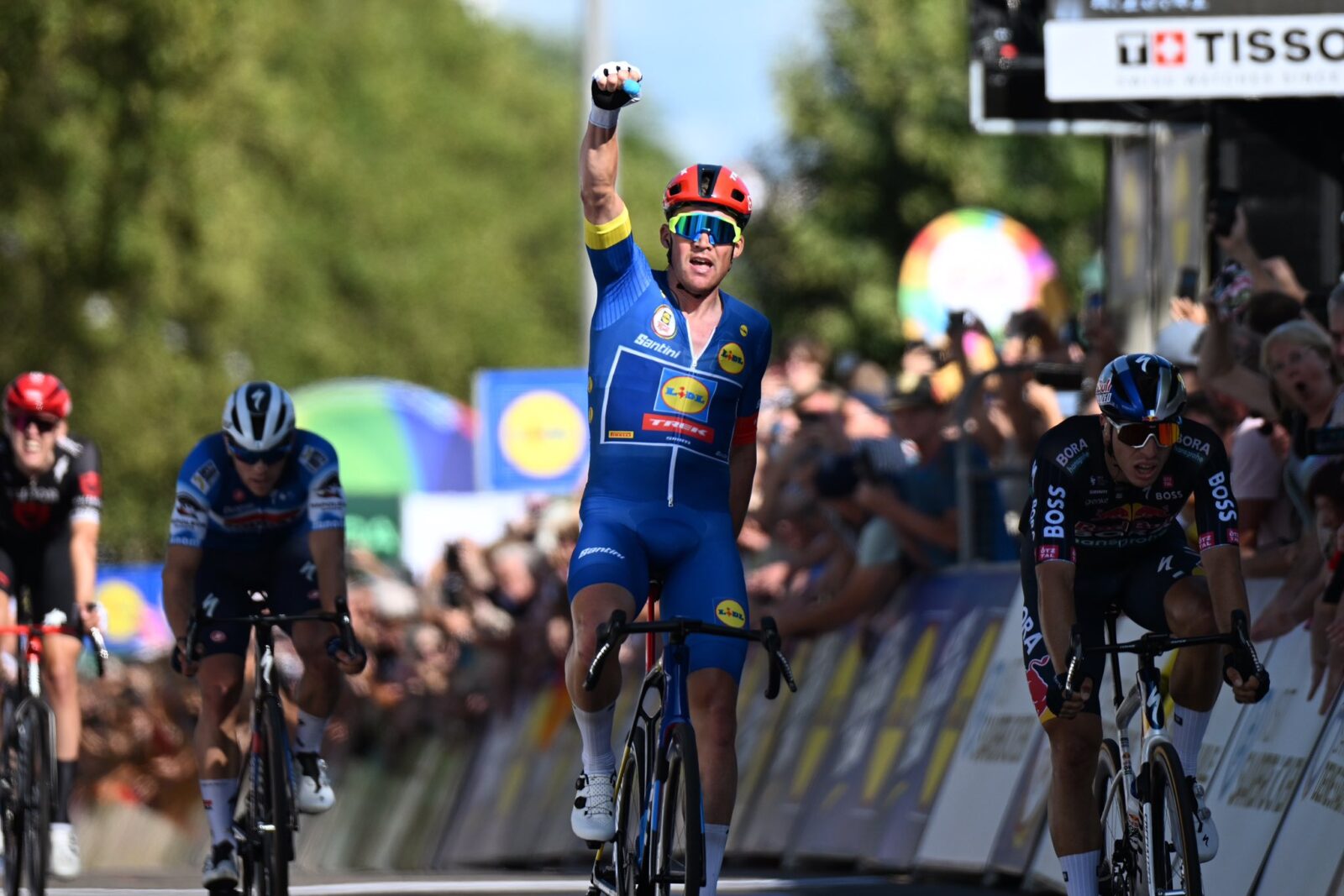 На финише гонщик Lidl — Trek обыграл Данни ван Поппеля из Red Bull — BORA — hansgrohe и Люка Ламперти из Soudal — Quick Step.