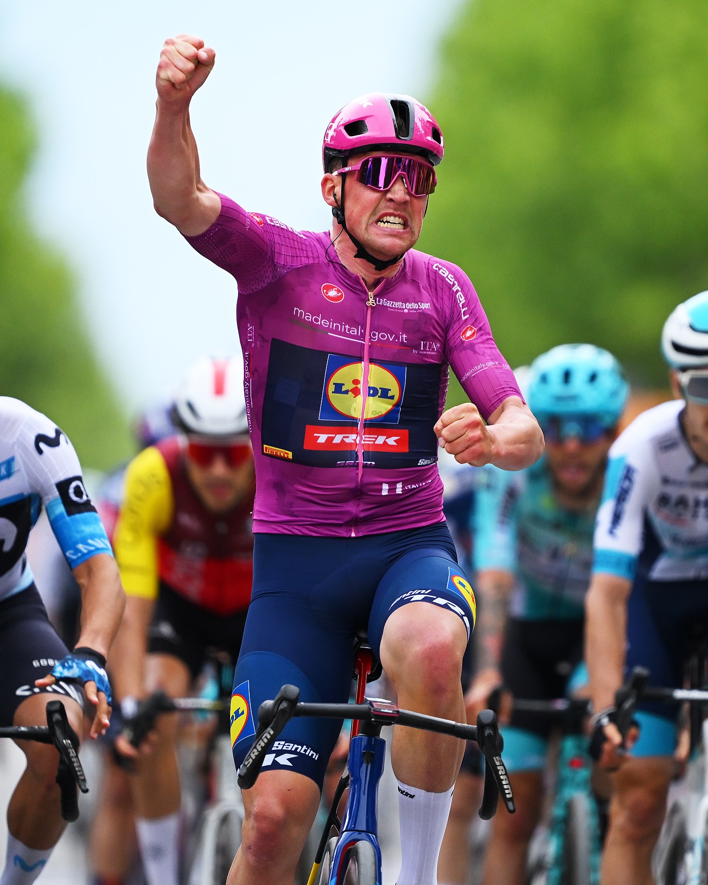 Тем временем Lidl — Trek и Red Bull — Bora — Hansgrohe наращивали темп и уже готовились к спринту, но без чистых спринтеров — те отстали на перевале Логара. Это значительно упростило Педерсену задачу. И он с ней великолепно справился. Помимо победы на этапе датчанин вернул себе розовую майку лидера «Джиро д’Италии».