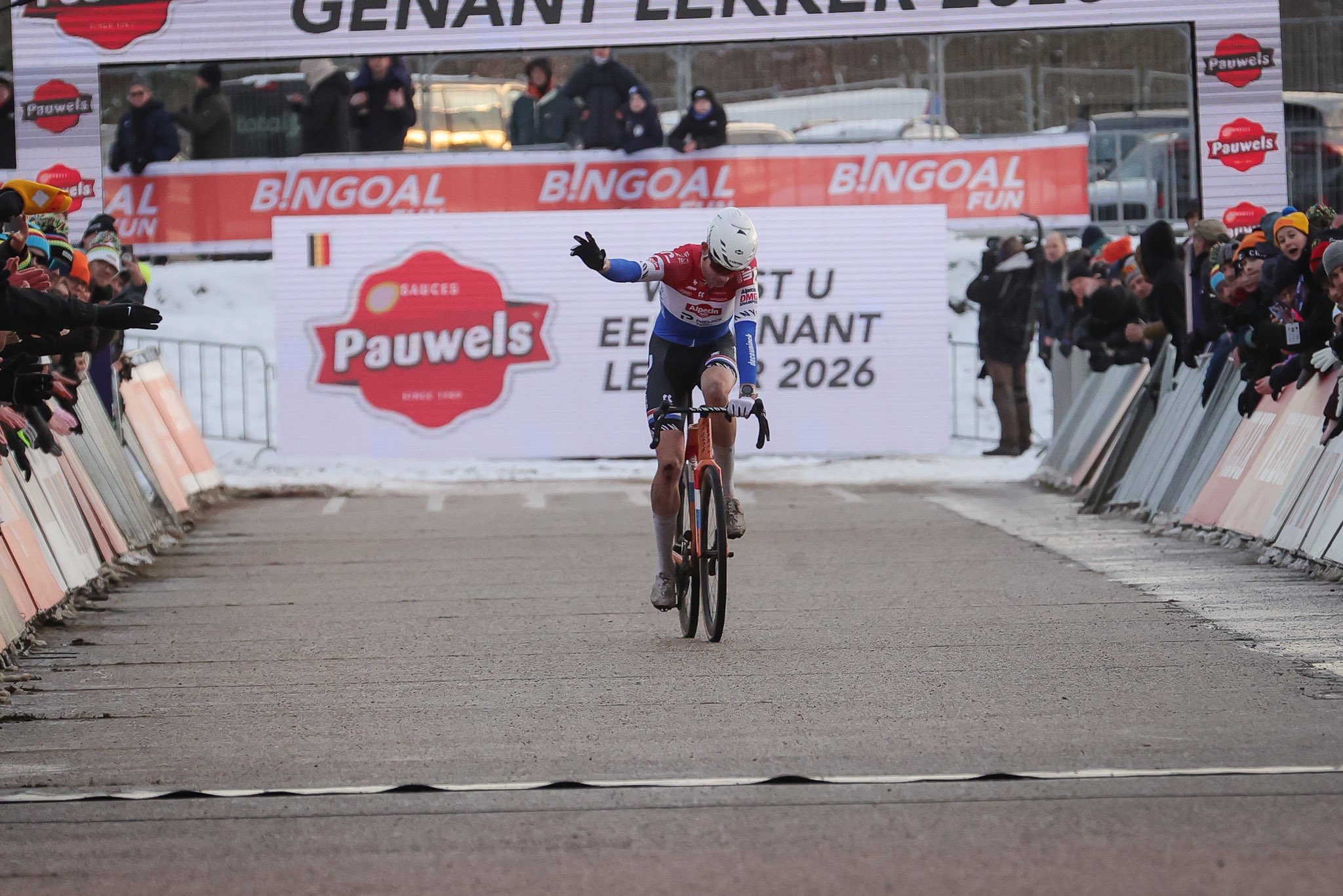 В Зонховене сегодня было многолюдно: несколько тысяч зрителей собрались посмотреть на девятый этап Кубка мира по велокроссу и борьбу Матье ван дер Пула против всех. Люди увидели то, за чем пришли — невероятное мастерство владения велосипедом со стороны летучего голландца, а также множество падений на коварном песке и частично заснеженной трассе бельгийского городка.