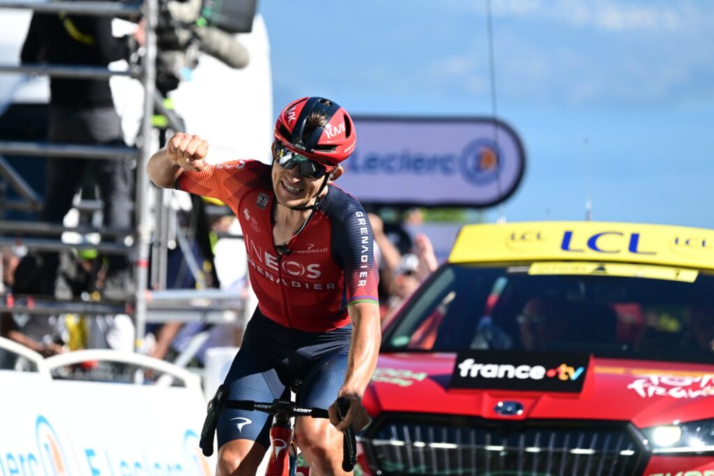Михал Квятковский из команды INEOS Grenadiers добился победы на 13-м этапе велогонки «Тур де Франс»: сегодня гонщиков ждал жаркий день с подъёмом на легендарную гору Гран Коломбье — всего 137,8 километра.