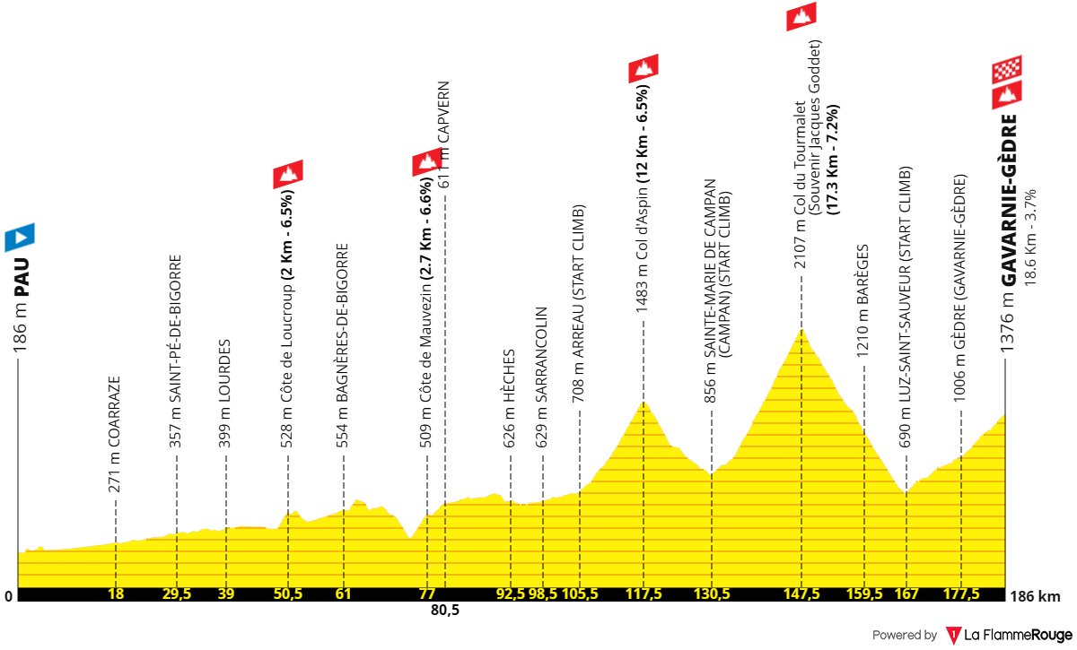 Шестой этап — пожалуй, может стать ключевым моментом первой недели. Гаварни и Турмале — хорошо знакомые названия. И если Тадей Погачар будет зол, то он вполне способен выиграть здесь не только этап, но и две-три минуты у Йонаса и Ремко. Но и атака отрыва вполне вероятна — местность благоприятствует.
