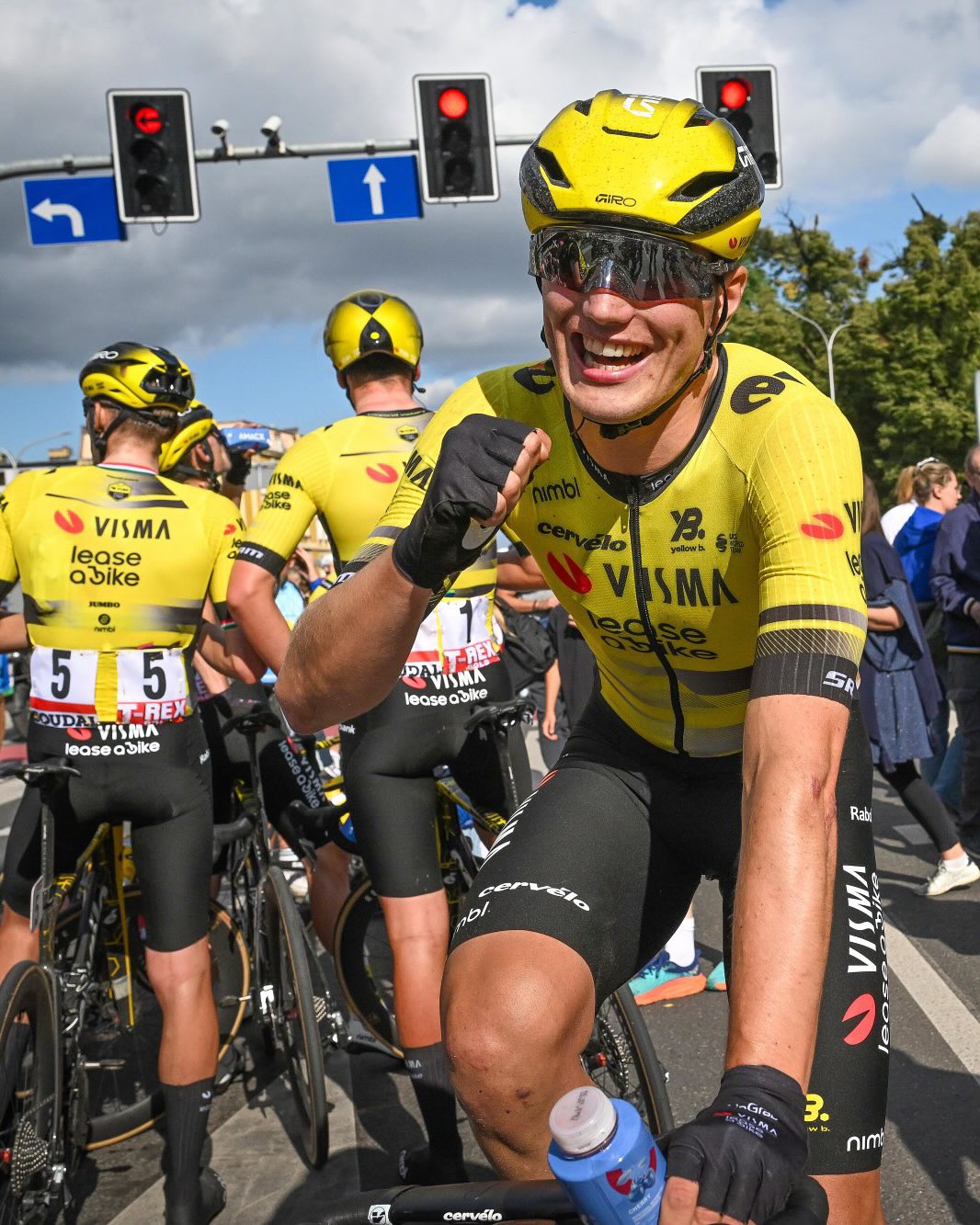 Олав Кой из Visma | Lease a Bike одержал победу на первом этапе велосипедного «Тура Польши», обыграв в спринте совсем непростого соперника — Поля Манье: француз из Soudal — Quick Step проиграл длину колеса, но спринтовал он из трудного положения, а вот голландца очень хорошо развезла его команда и последним в этом спринтерском поезде был Мэттью Бреннан.