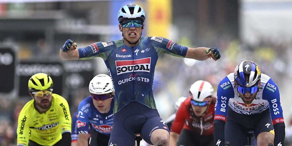 Последние три километра превратились в скоростную битву спринтерских поездов. Команда Soudal – Quick Step идеально отработала последний поворот, выведя Манье на выгодную позицию. И далее француз со всей мощи помчался к победе, оставив позади Йорди Мёйса из Red Bull, Павла Биттнера из Picnic PostNL и Йеспера Филипсена из Alpecin — Premier Tech.