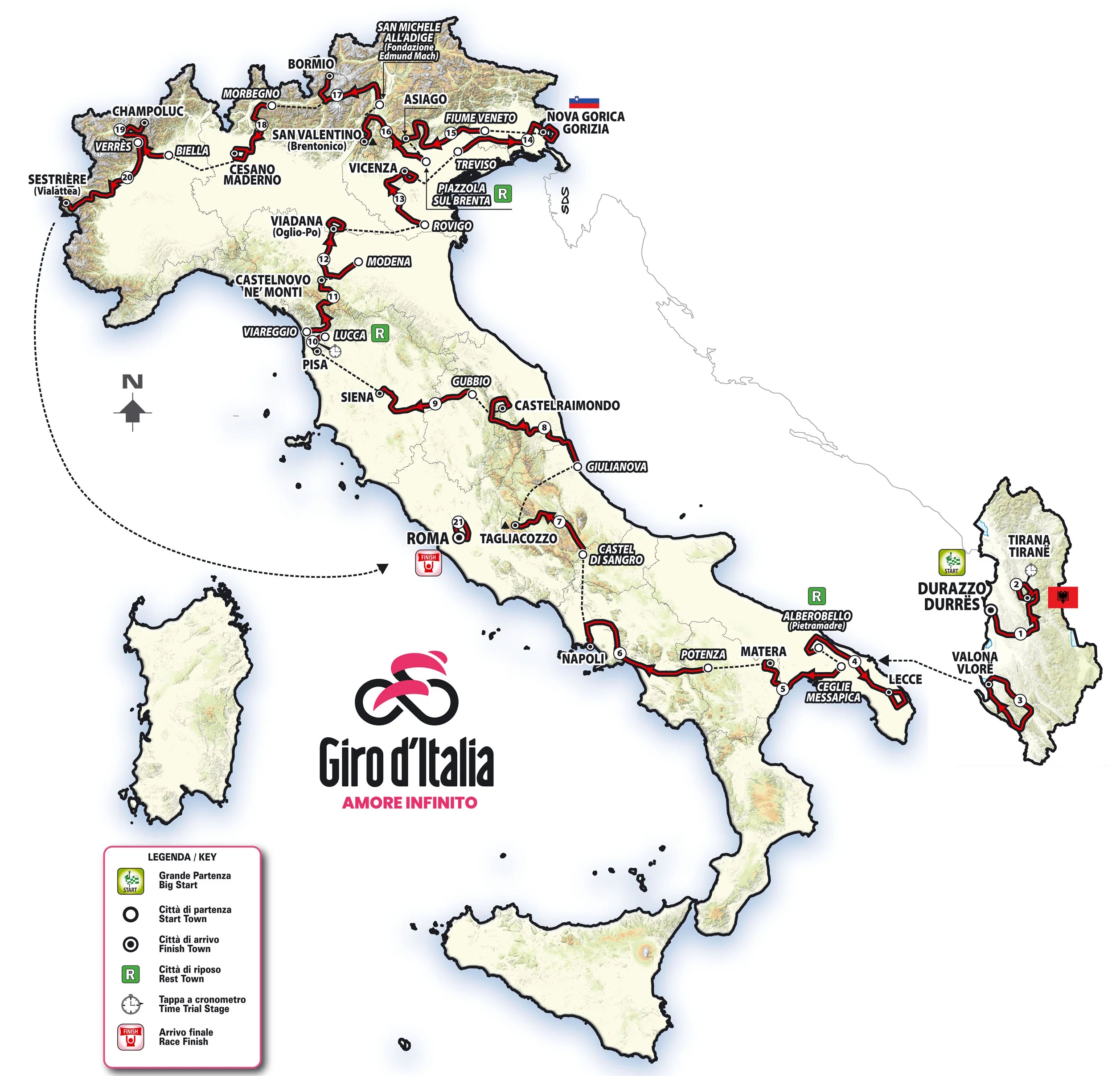 108-я «Джиро д’Италия» обещает стать одним из самых захватывающих Гран-туров в истории. Впервые в истории гонки Grande Partenza пройдёт в Албании, открывая трехнедельное испытание тремя этапами в Тиране, Дурресе и Влоре.