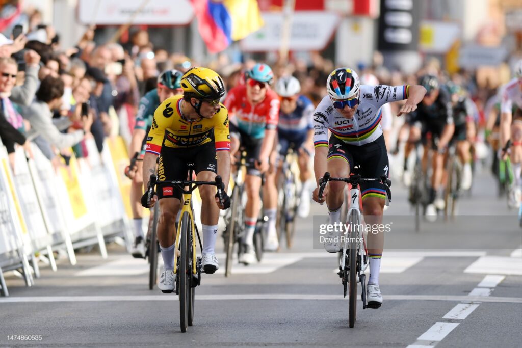 Надо отметить, команды Jumbo-Visma и Soudal — Quick Step приложили максимум усилия для того, чтобы их лидеры заняли выгодную позицию. И Роглич был даже в более выгодной позиции, поскольку Эвенпулу пришлось спринтовать из глубины группы.