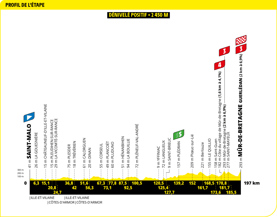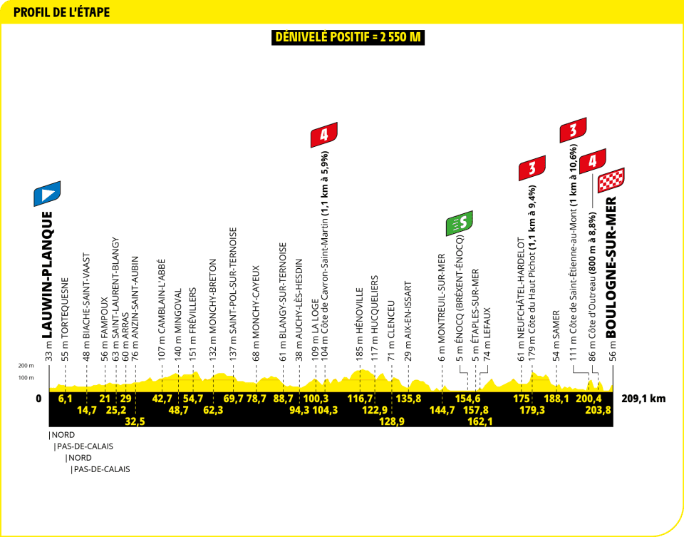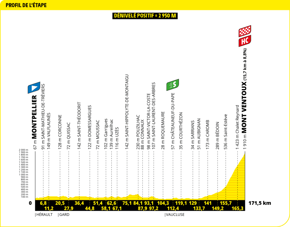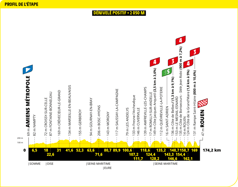 Набор высоты на этапах «Тур де Франс — 2025»):