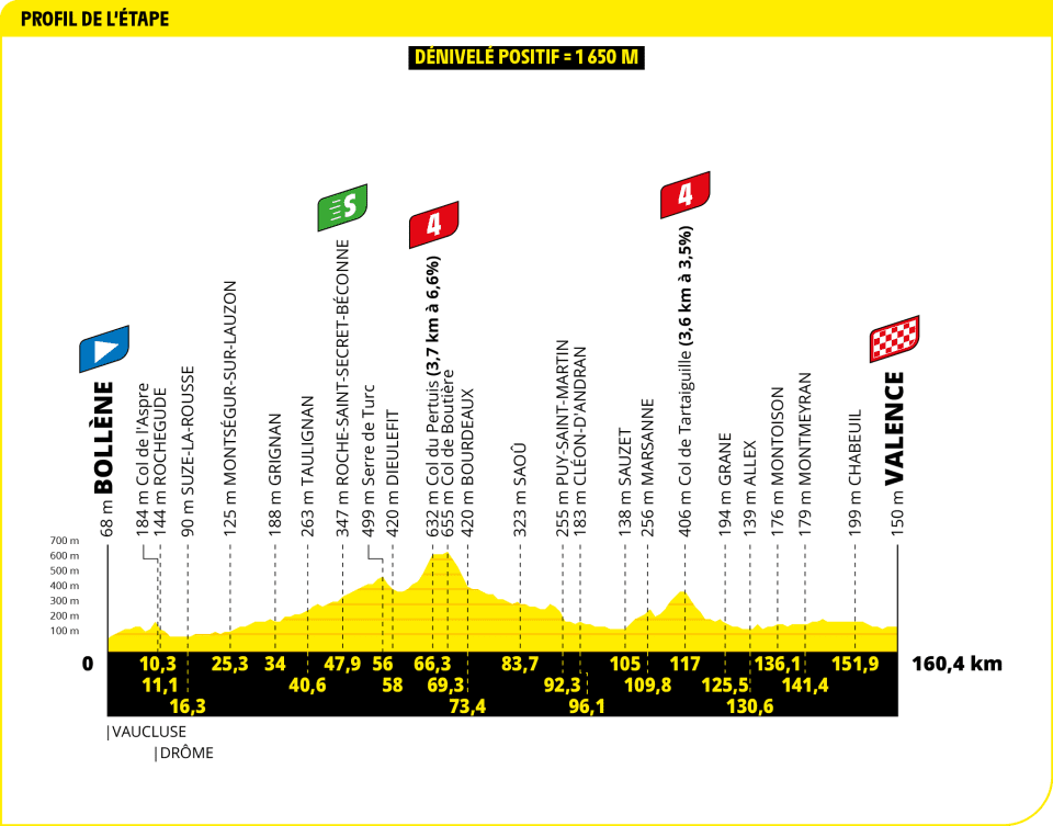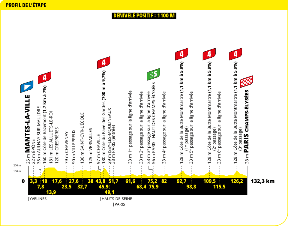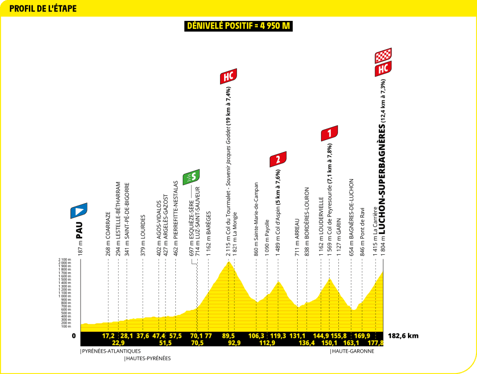 Ещё в конце октября были представлены дистанции всех этапов, а теперь — профили. Первые 9 гоночных дней отлично подойдут любителям холмов и спринта, а вот вторая и третья неделя позволит проявить себя горняках, в том числе и фаворитам. Особенно сложными для последних будут 13-й (гонка с раздельным стартом на 10,9 километра, последние 8 километров из которых имеют средний уклон в 7,9%, а на последнем километре — 13%), 14-й (подъём на горнолыжный курорт Люшон-Супербаньер), 18-й (перевал Коль-де-ла-Лоз) и 19-й этапы (финал на горнолыжном курорте Ла-Плань).