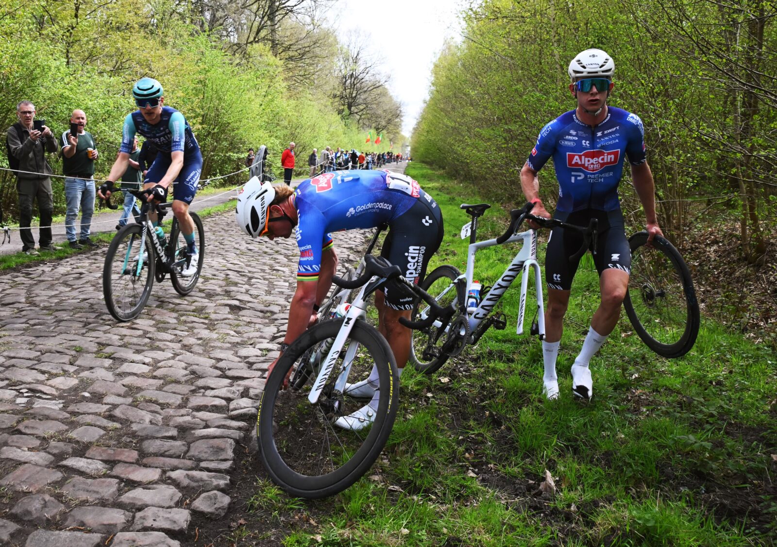 До леса Аренберга Ван дер Пул шёл в группе лидеров. Заезжая на брусчатку, он поймал прокол. Рядом был Йеспер Филипсен. Он быстро спешился и предложил капитану свой велосипед. Однако летучий голландец никак не мог встегнуться в педали. Делать было нечего – пришлось вновь останавливаться. Тибор Дель Гроссо, ещё один товарищ по Alpecin — Premier Tech, методично снял переднее колесо со своего велосипеда и поставил его на велосипед Матье. Проехав пару минут ван дер Пул вновь спешился. Как оказалось — он поймал ещё один прокол. Тотальное невезение…