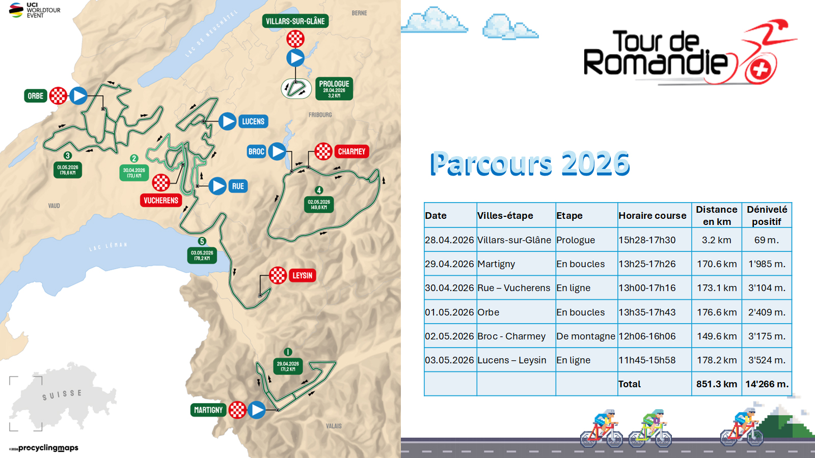 Он считает, что Романдия находится в правильной дате — единственная гонка WorldTour в этот период, хотя признал, что иностранный старт Джиро (в этом году в Венгрии) сыграл против швейцарской пятидневки (плюс пролог). Команды, пропустившие гонку в 2026 году, обязаны стартовать в 2027-м.