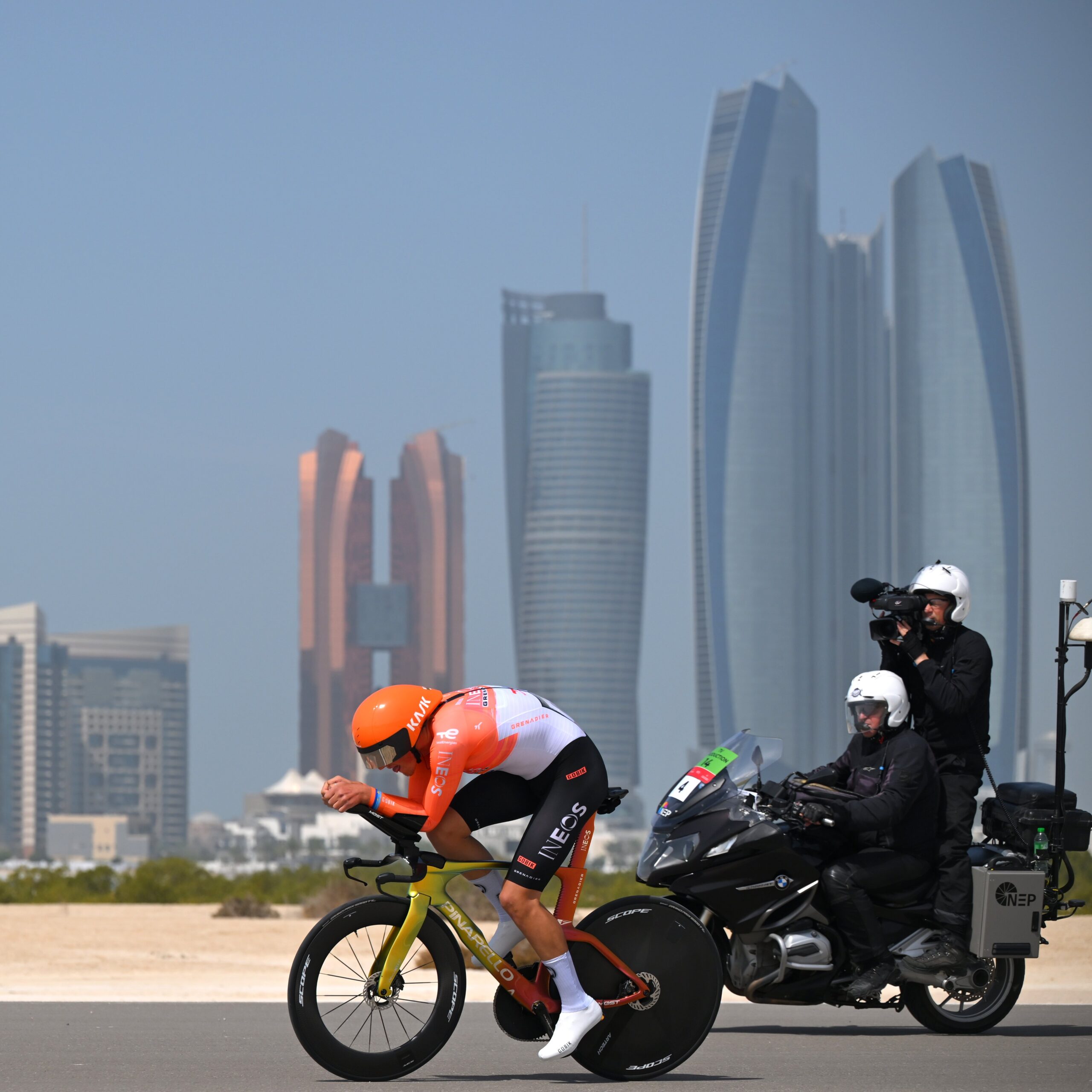 Разделка протяженностью около 12,2 километра прошла на острове Аль-Худайрият. Маршрут — практически стерильный с точки зрения рельефа: абсолютная плоскость, минимум технических элементов, редкие повороты. Такой профиль создан для гонщиков, способных развивать высокую стабильную мощность и удерживать аэродинамическую позицию без малейших колебаний.