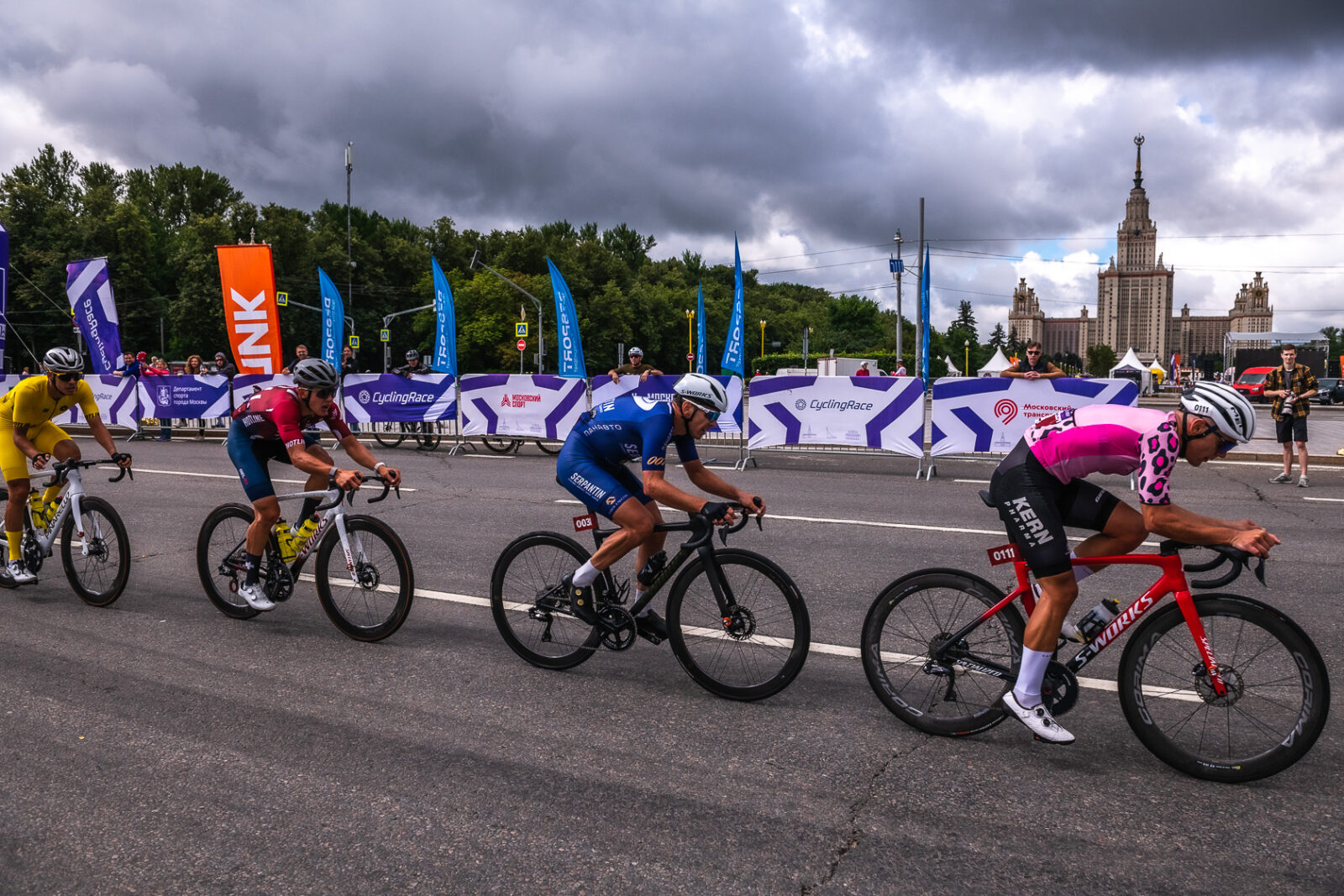 Велогонка на Воробьевых горах проходит второй год подряд и, казалось, утром после обильных проливных дождей накануне, всех будет ждать хмурая погода, как и год назад, которая разыгралась только к финишу гонки. Спойлер — так и произошло.