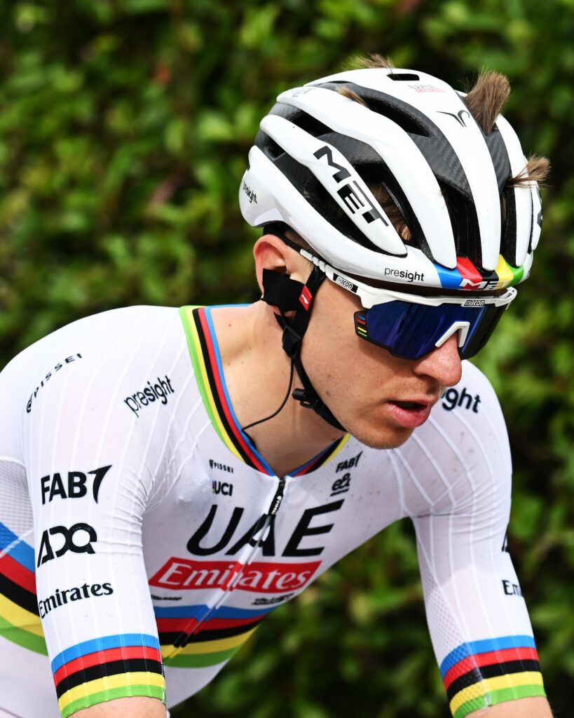 Спортивная часть заезда Погачара, как всегда, впечатляет: словенец промчался более 130 километров со средней скоростью чуть меньше 41 км/ч. Попутно Тадей «забрал» очередной КОМ (рекорд участка) на одном из подъёмов, доказав, что его форма перед стартом сезона близка к идеальной. Но обсуждают в комментариях не ватты и не аэродинамику.