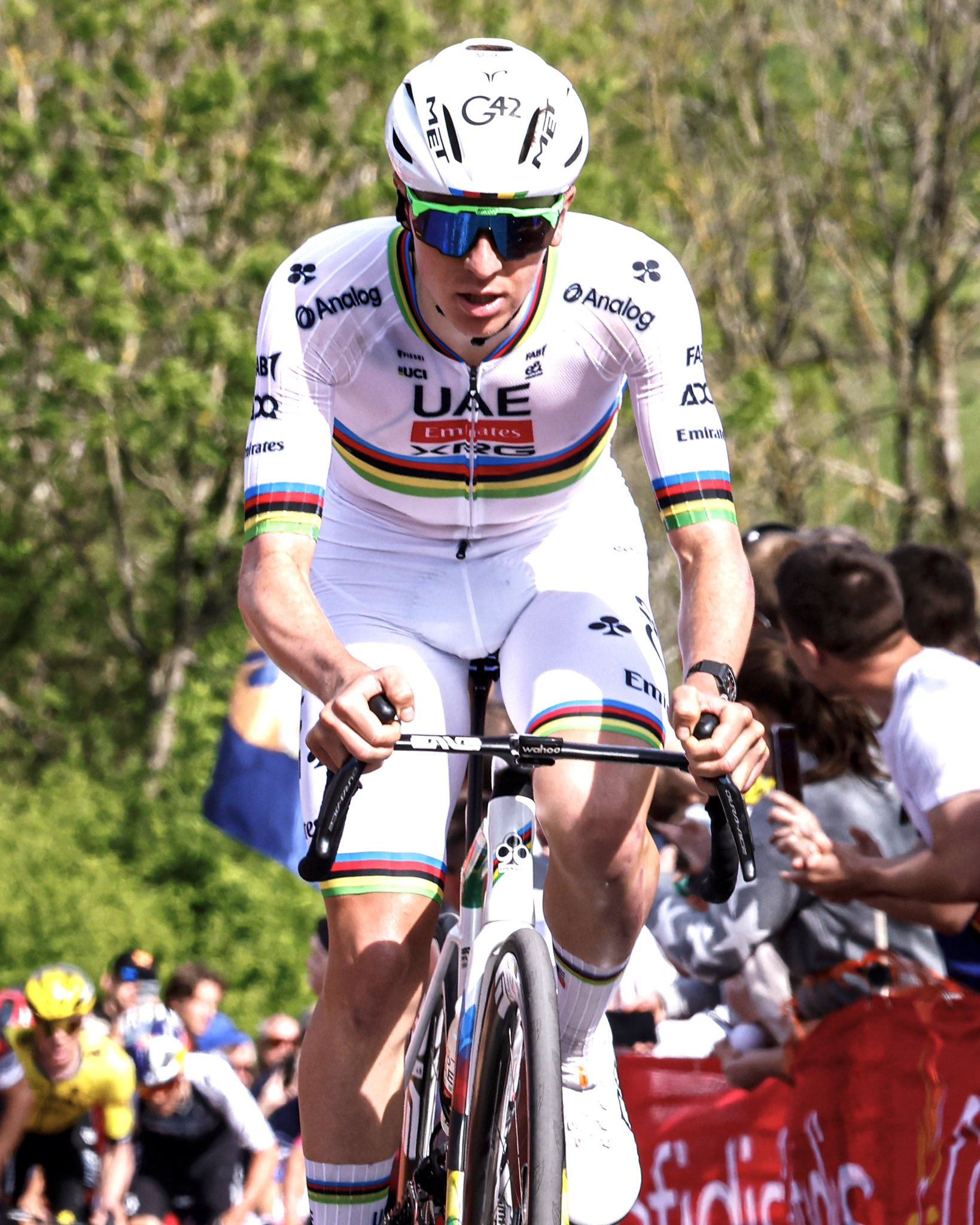 Сразу после атаки Погачара на Кот-де-ла-Редут его начали преследовать Том Пидкок и Бен Хили, а также Джулио Чикконе и Жюлиан Алафилипп. Сначала они проигрывали в районе 15 секунд, затем этот отрыв увеличился до 40, а далее и до минуты. К тому моменту Алафилиппу стало уже совсем тяжело и он откатился в пелотон. Вскоре это сделал и Пидкок. И преследование Погачара продолжали только Чикконе и Хили.