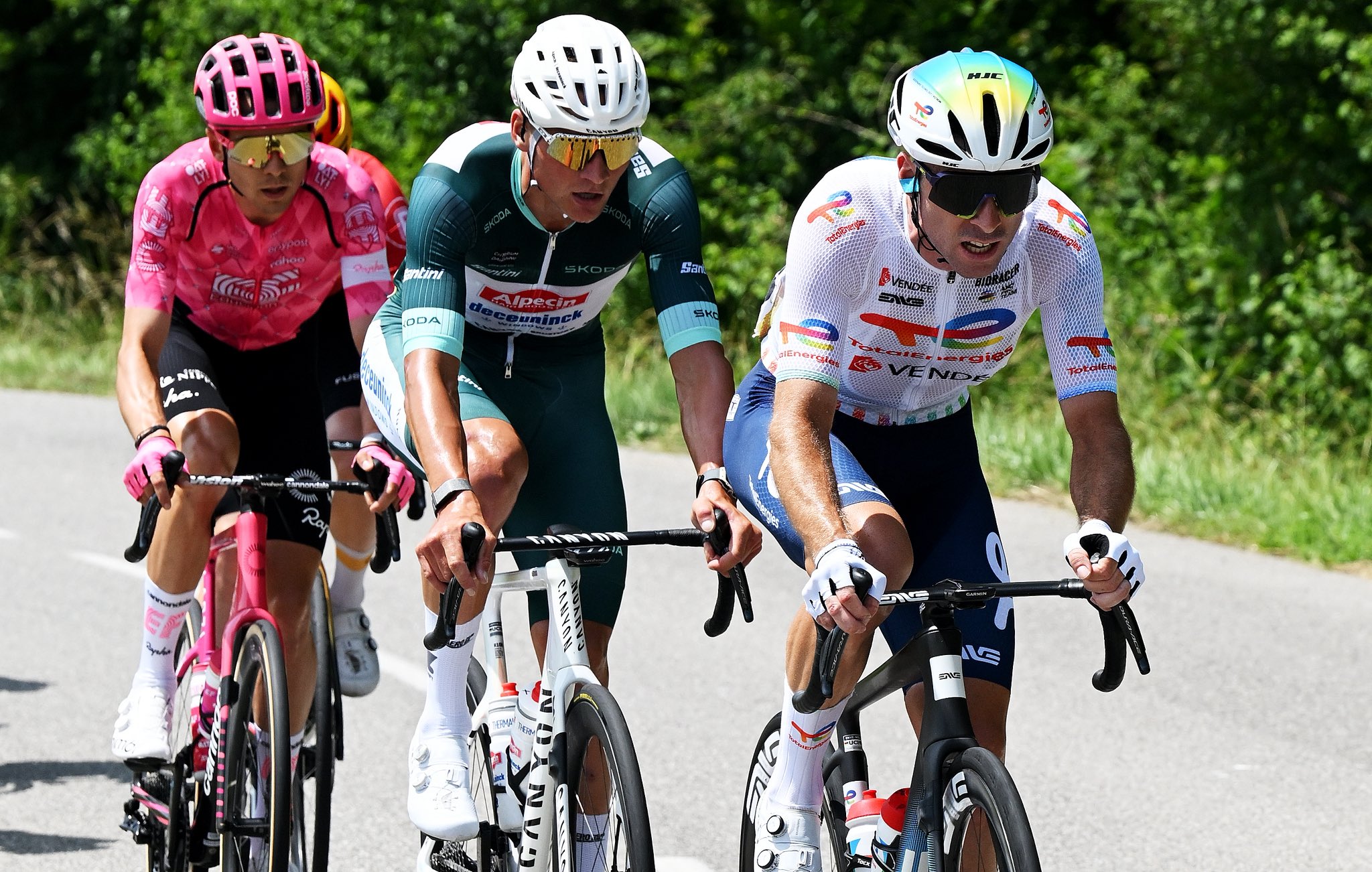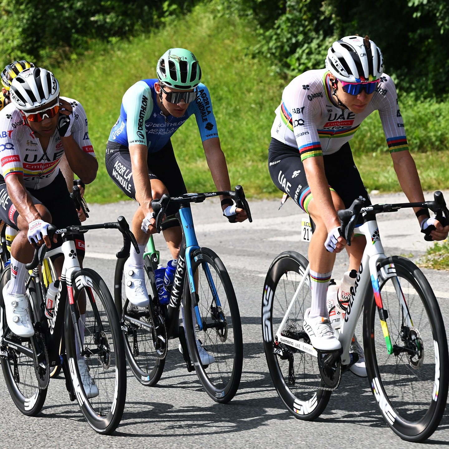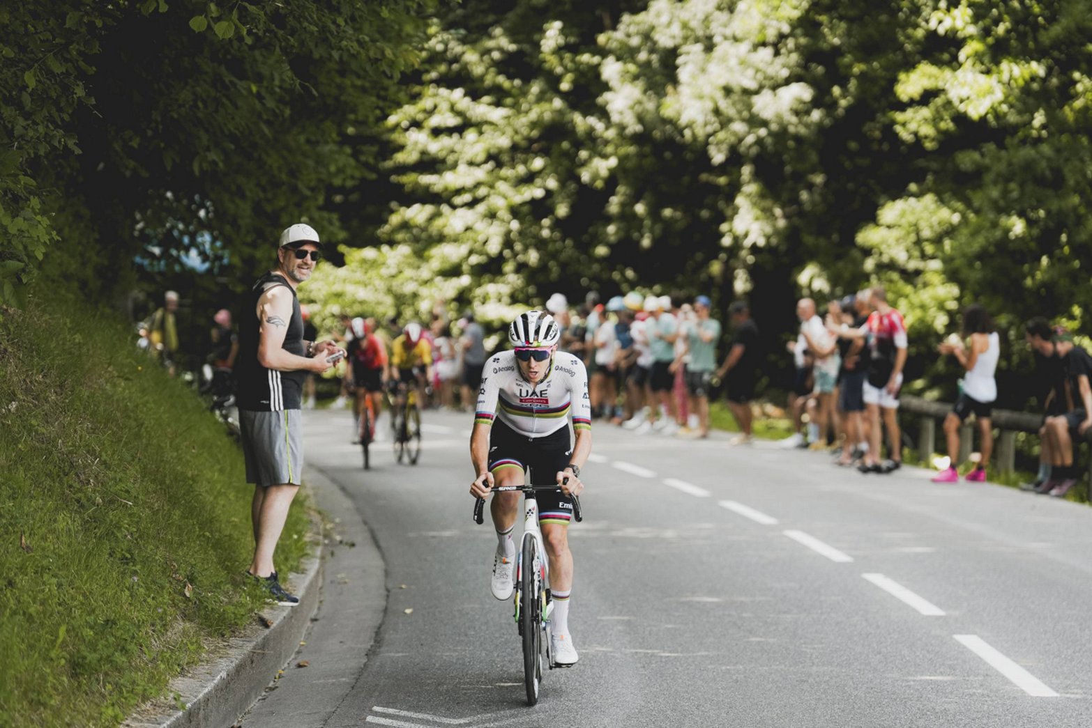 Однако тут же последовала атака Погачара. Йонас Вингегор ответил, но не проехал и 200 метров, как датчанин начал отставать. Тадей тем временем уезжал всё дальше и дальше. Вскоре отрыв достиг 15 секунд, затем — 30, а потом и 45. Ремко ехал в своём темпе. Вместе с ним были Маттео Йоргенсон и Флориан Липовиц. Но вскоре в атаку отправился немец из Red Bull — Bora — Hansgrohe — он пытался догнать Вингегора, а затем и товарищ Йонаса — Маттео Йоргенсон.