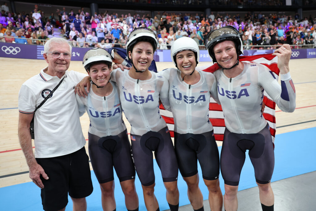 Командную гонку преследования у женщин на Олимпийских играх в Париже выиграла сборная США: Дженифер Валенте, Лили Уильямс, Хлоя Дайгерт и Кристен Фолкнер проехали дистанцию за 4 минуты и 4,306 секунды.