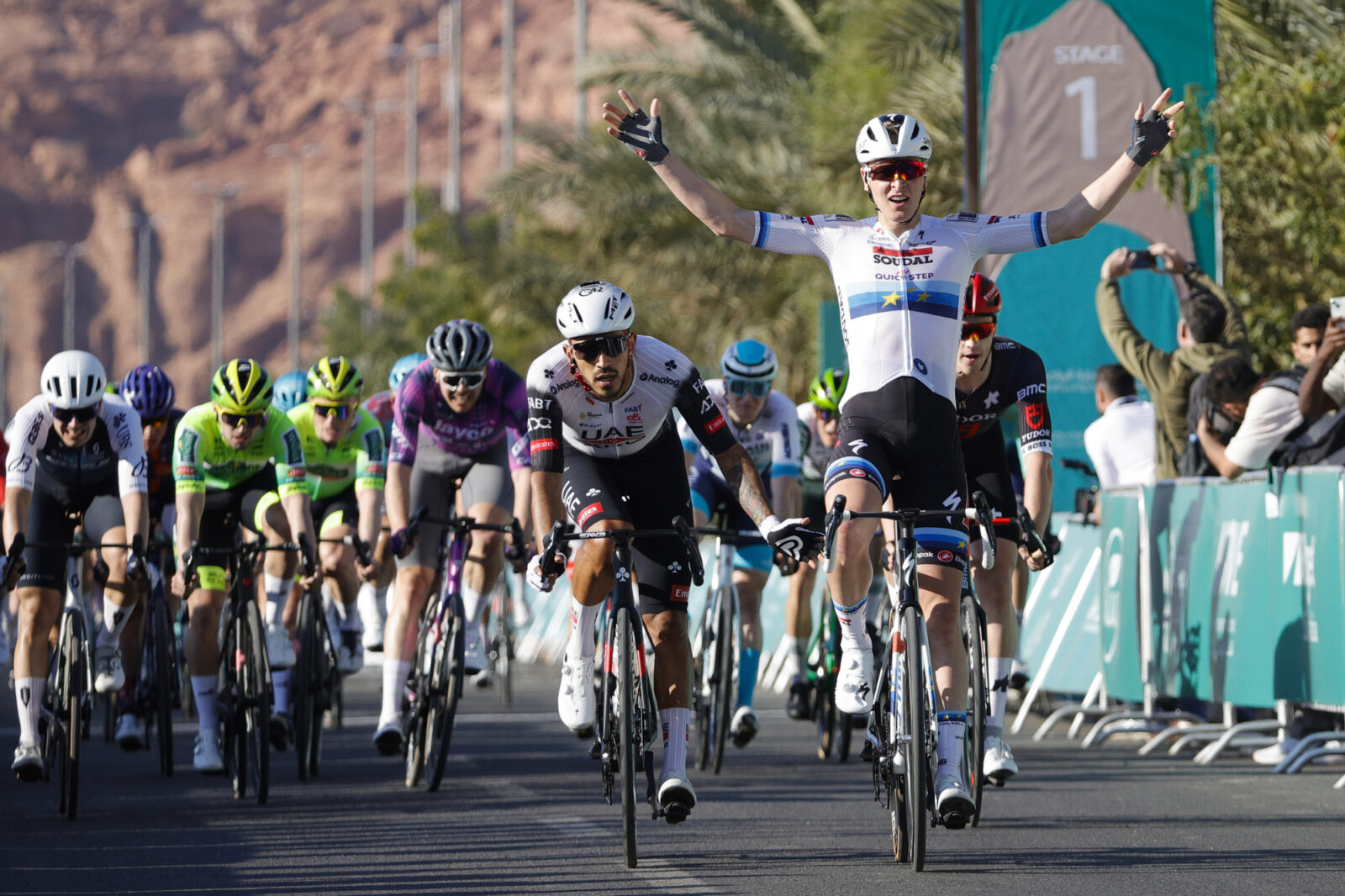 Победу на первом этапе AlUla Tour одержал Тим Мерлир: почти 143-километровая дистанция ожидаемо завершилась групповым спринтом, в котором спринтер команды Soudal — Quick Step оказался быстрее Хуана Себастьяно Молано из UAE Emirates — XRG и Майкела Зийларда из Tudor. Время победителя — 3 часа 10 минут и 21 секунда.