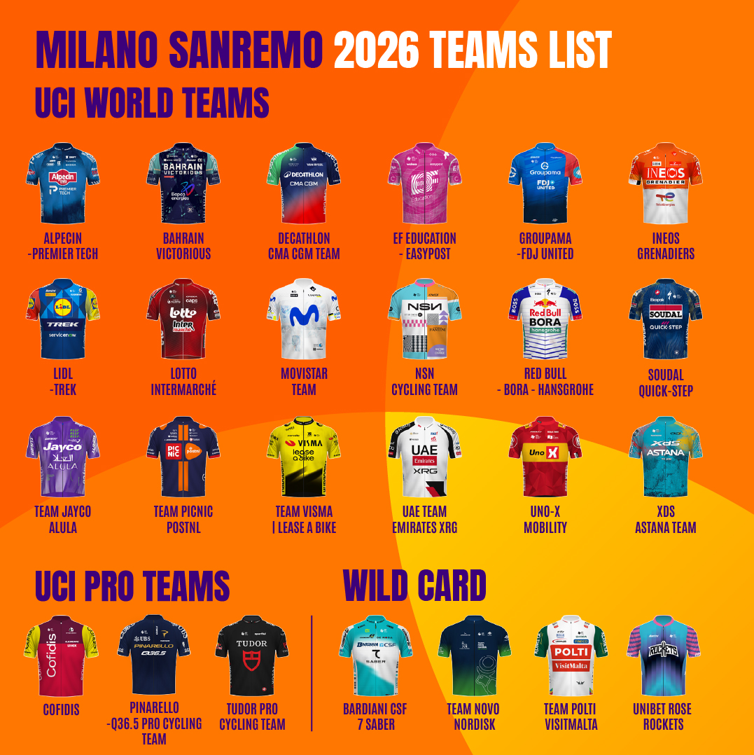 Милан — Сан-Ремо (21 марта). Приглашены те же коллективы, за исключением венгерской MBH Bank. Вместо них в самой длинной однодневке года примет участие американская Team Novo Nordisk. Для «Ракет» это также будет дебют на Монументе.