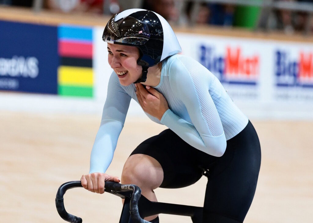 - Ей 24 года, она уже является чемпионкой мира и Европы по велотреку.